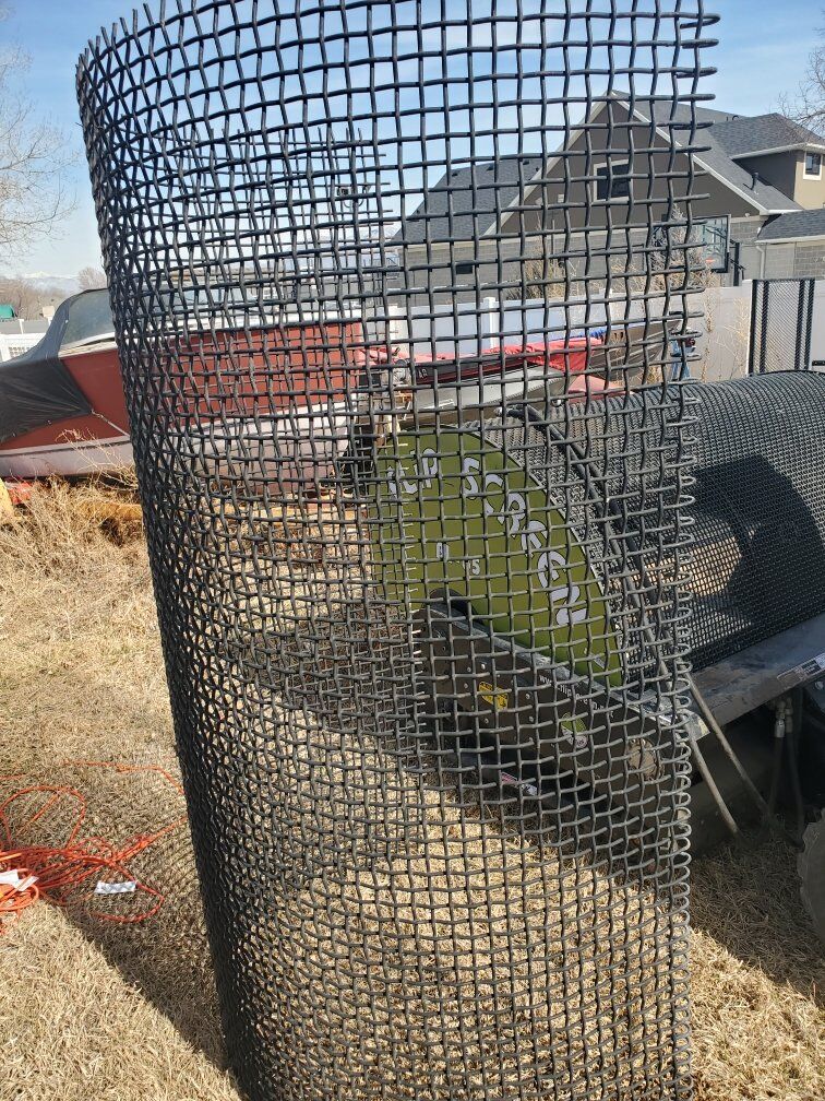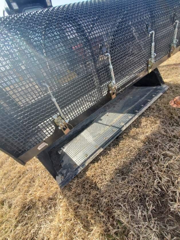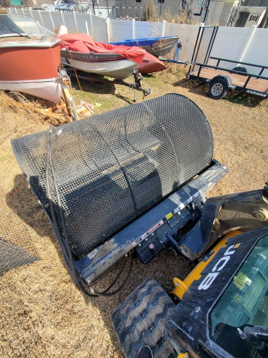 Screening skidsteer bucket with 2 sizes of screens included (1inch and 1/2 inch). Bought in 2021 for a project and it has been in a storage container since then with very little use. We used it to separate glass and other fine trash debris from the dirt by catching it in this screener. You can get more info on this cool attachment by looking up flipscreen's website.