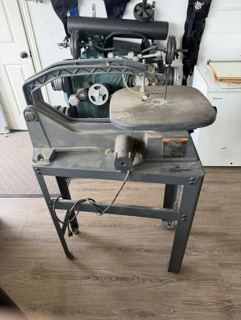VenmoSears craftsman 20 inch scroll saw variable speed control accepts pin and plane and blades quick change blade holder, sawdust blower blade storage electronic overload protection 16 inch swivel table cast-iron construction