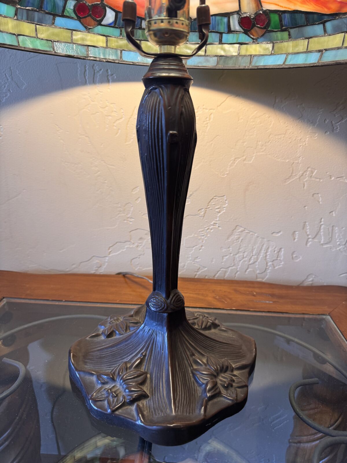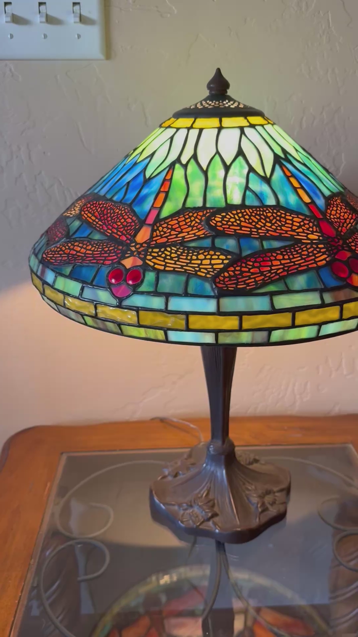 Beautiful Lamp. I’m sad to have to get rid of it. It is capable of clicking it to regular light or dimmed light perfect for mood lighting when desired.