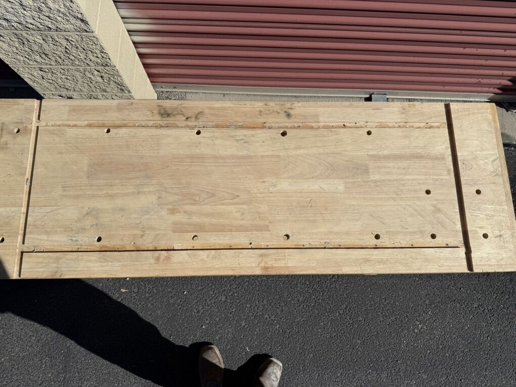 VenmoThis is a Harbor Freight workbench that the previous owner modified slightly. It is on nice casters and comes with a vice and some stops for the dog holes.