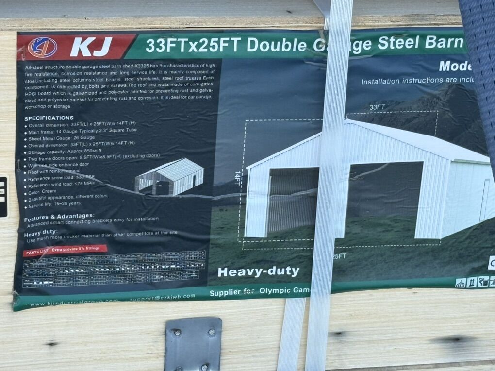 Kj3325 metal building. Comes complete brand new in unopened boxes. What’s included is everything you need to build. Does not include architectural drawings or garage doors. Interested in trade for something fun. I like drift cars off-road toys campers interesting vehicles etc. Not interested in 2 amendment items.