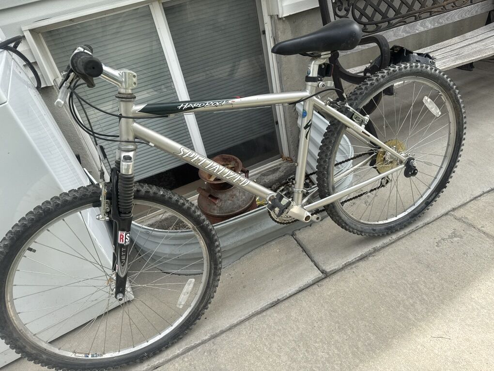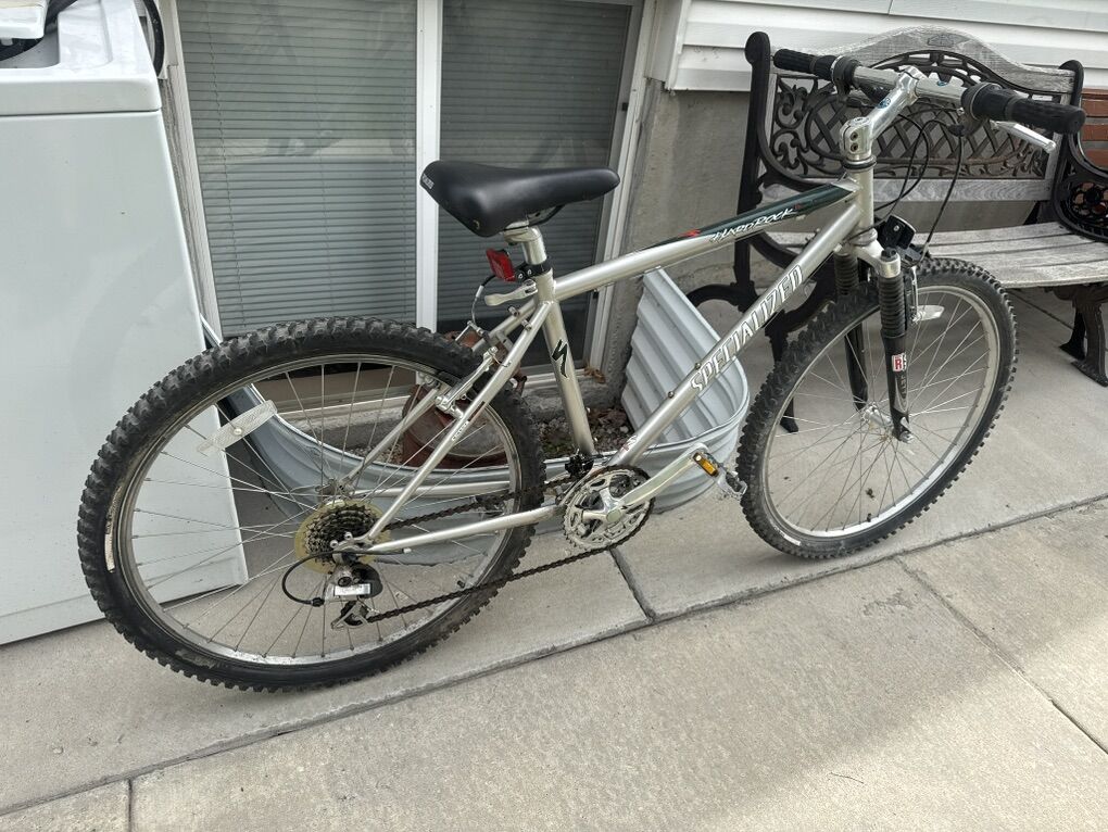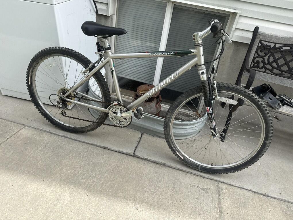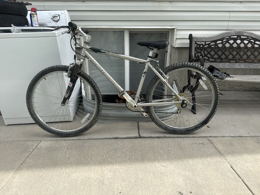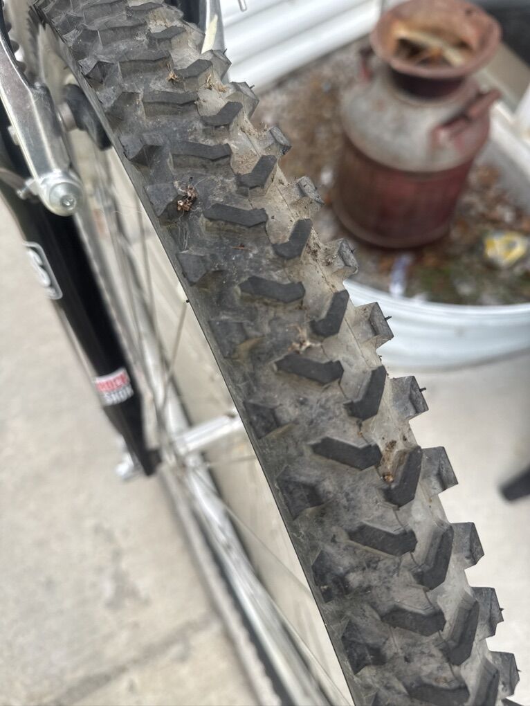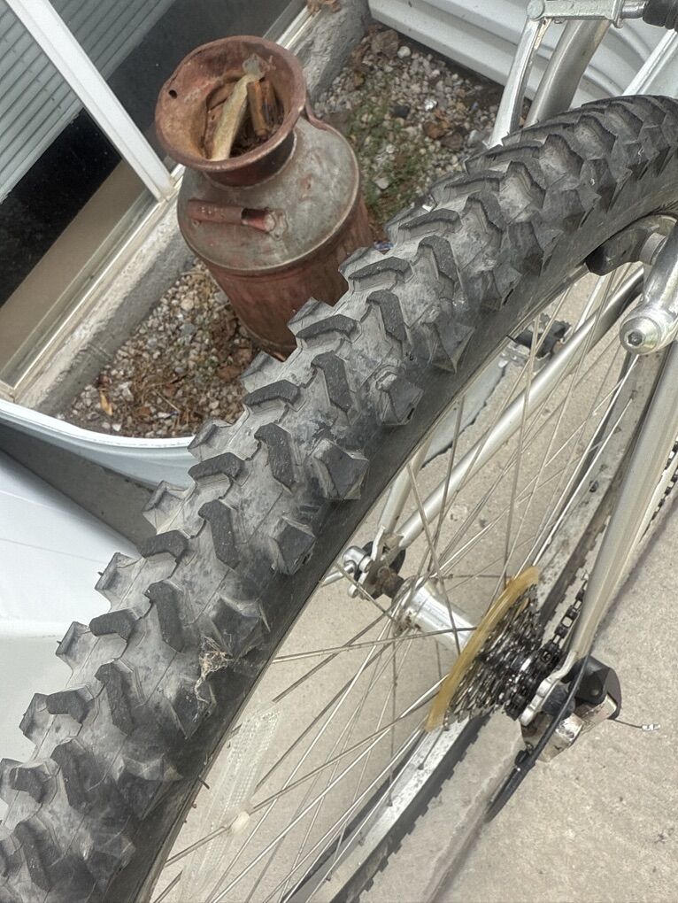 This Bike is still in good condition still in good shape, both tires hold air , tire treads are still good , pedals are good, handlebars are good , seat is still good, frame is still solid & has no cracks, brakes work great and shifters work great, 7x3 , 21 speed , front suspension works great