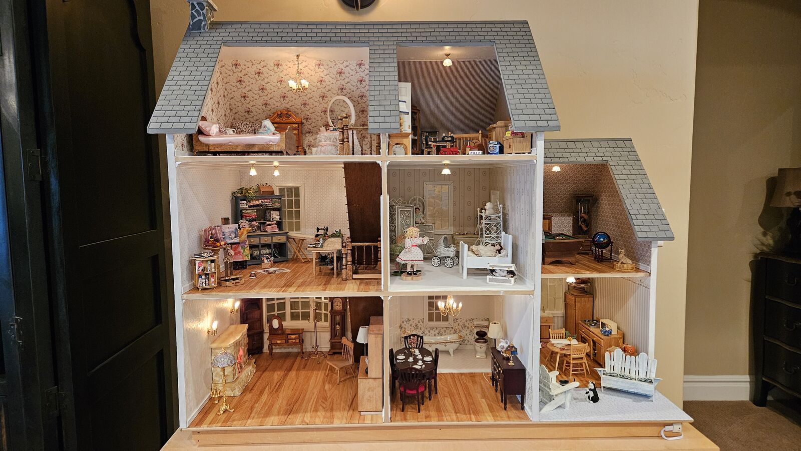 VenmoFully furnished three level doll house with eight rooms, electricity, extra furnishings. Build table with movable top included.
