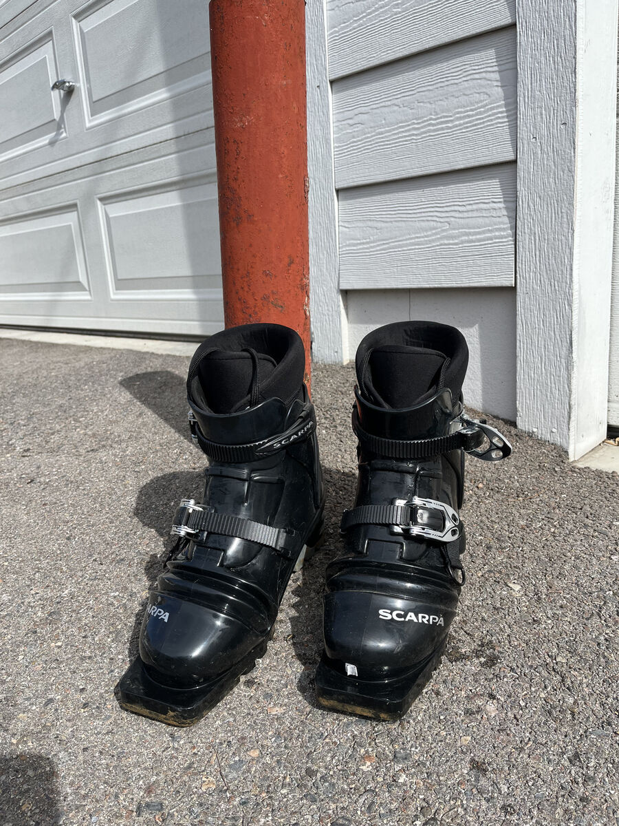 VenmoAltai 174 cm backcountry ski with Voile 3 pin telemark bindings and Scarpa T4 Boots, size 11 mens. These are really fun touring skies! More aggressive than a cross country setup and perfect for moderate terrain exploration. Only selling because I don't use them enough. Superifical scratches on base, otherwise in great shape.