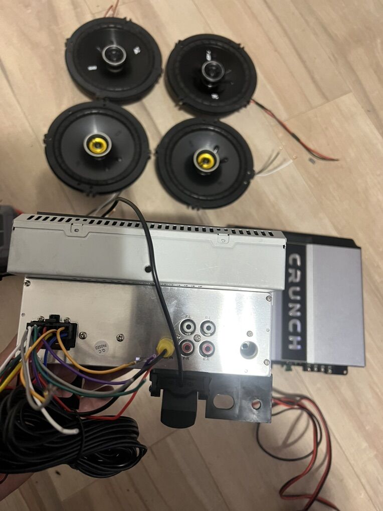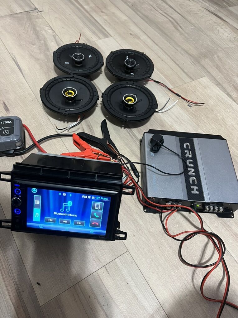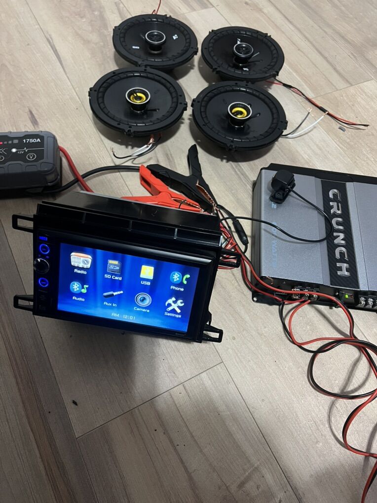 Complete sound system Stereo BLUETOOTH out puts FM USB AUX mic new reverse camera 4 kickers 6.1/2” crunch 800 watts Amp