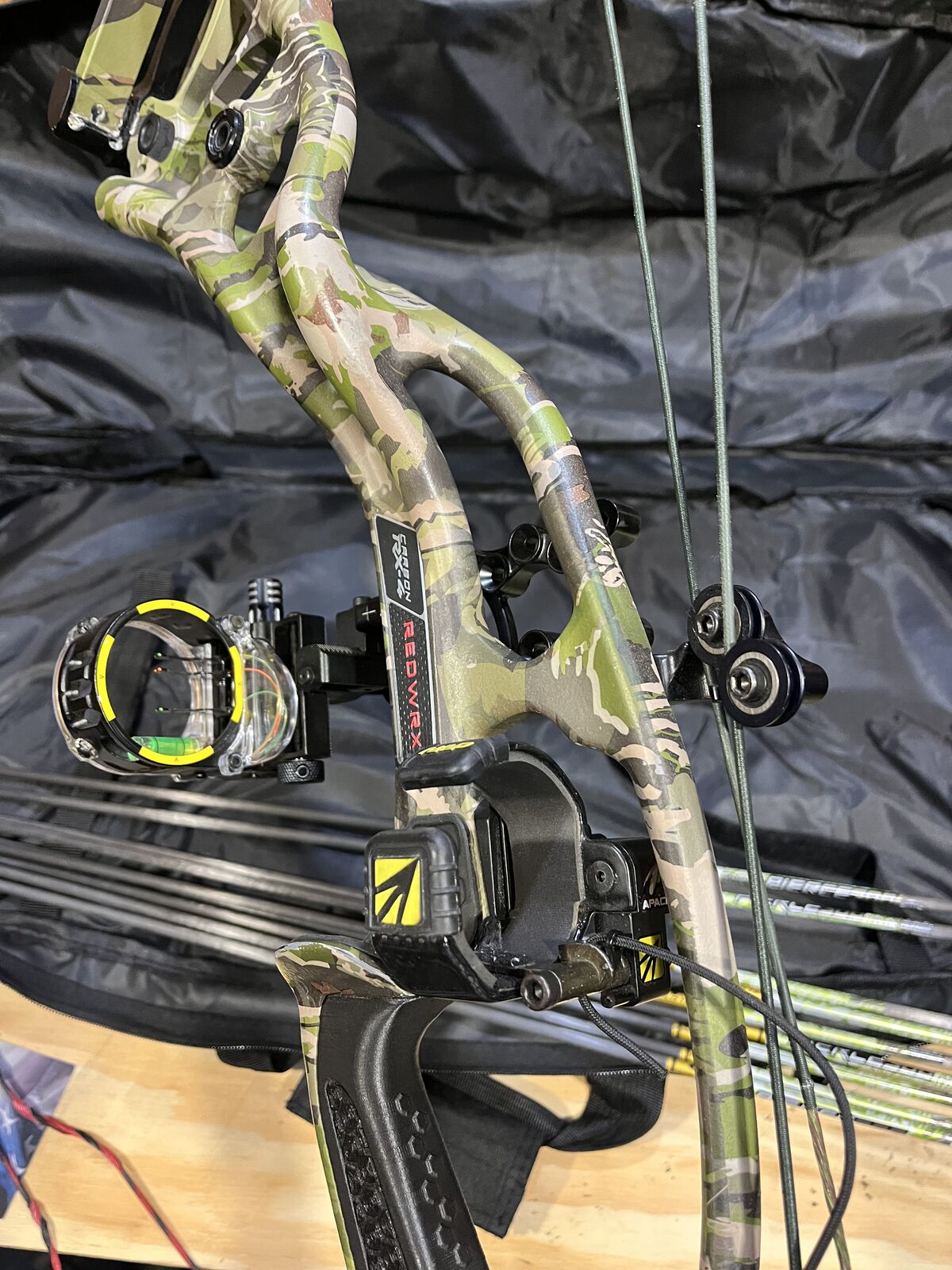 It will come with the following: ZTR # 3 Cam 30-32 draw 50 - 60 lbs limbs Gas strings Extra ABB strings Trophy Ridge 3 pin sight NAP Apache rest Bee Stinger Microhex stabilizer 9 Gold Tip Pierce 300 uncut arrows with field tips Amazon Bow Bag