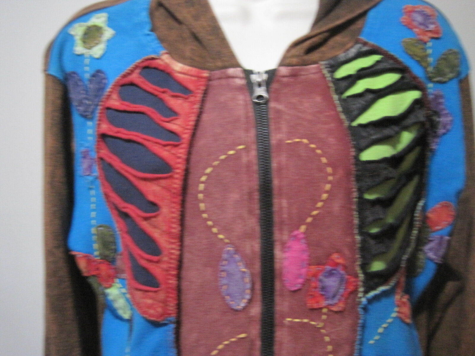 This Rising International Women's Large Brown Colorful Hoodie Jacket is a stylish and versatile addition to any wardrobe. Made from cotton with a colorful floral pattern, this long sleeve jacket features a zipper closure and a hood for added comfort. Perfect for travel, parties, or casual outings, this bohemian-themed jacket in multicolor is sure to make a statement. With a regular fit and size L, this basic jacket is ideal for the winter, fall, and spring seasons. Made in India, this unique piece combines fashion and function for a trendy look.