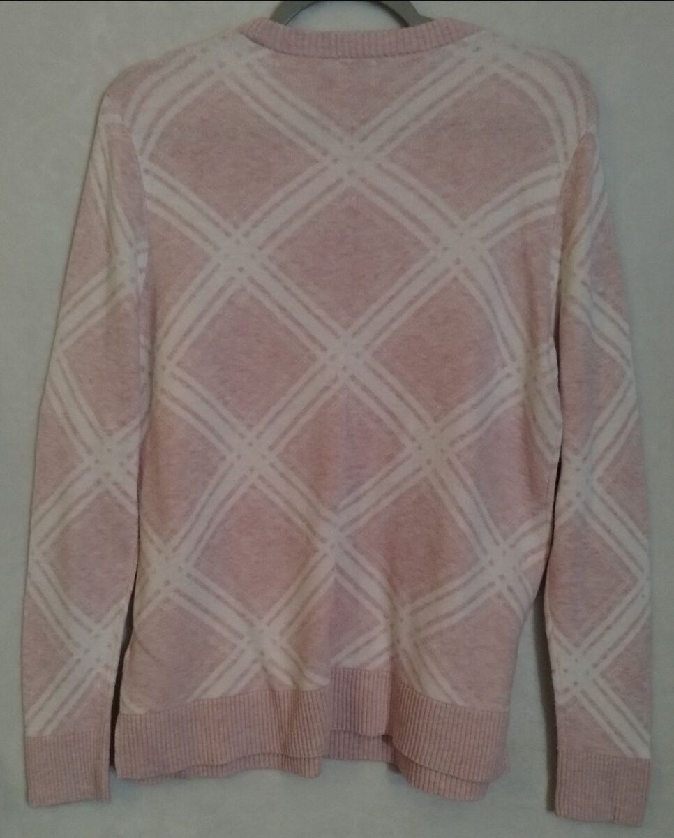 CashAppStay cozy and stylish with this pink and white sweater. Perfect for any casual outing.