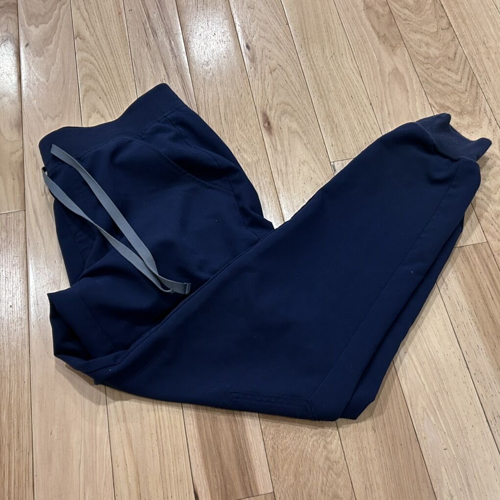 Figs Technical Collection Dark Navy Blue (PO 2788) Zamora Scrubs Joggers Pants - Women’s Size Small - elastic waistband with grey drawstrings and multiple pockets (including a zippered pocket) - style# W18SW2005 - pre-owned, great condition.