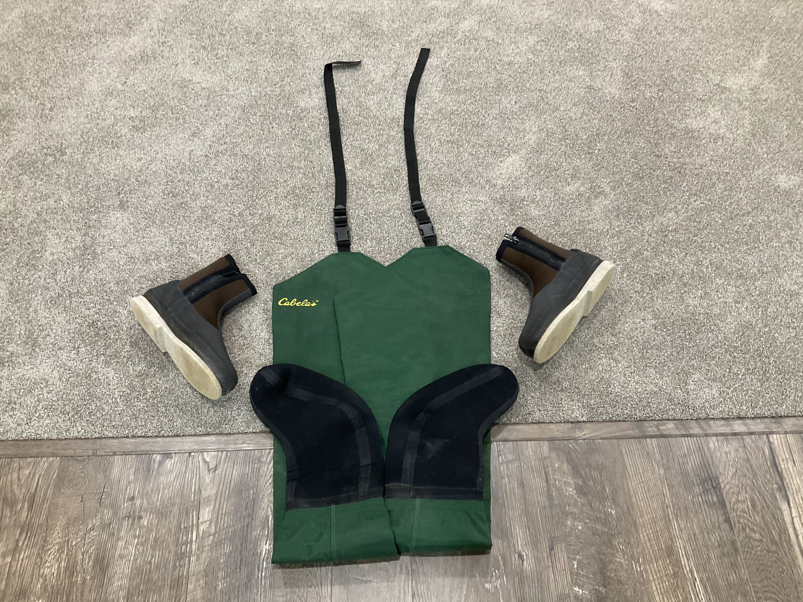 VenmoWaders Stocking Neoprene Foot & Wading Boots Cabela’s Brand. About size 9, Only worn once. They have been stored in a cool dark place. NO HOLES, RIPS OR TEARS. $50 for both or $25 each.