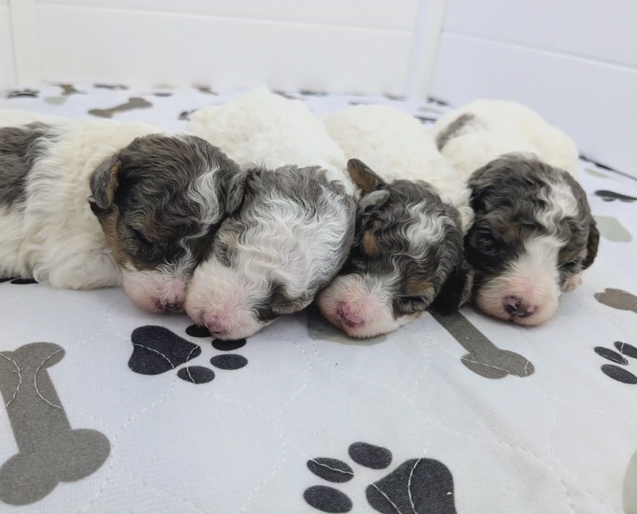 Our puppies are raised right in our home with daily love, handling, and intentional socialization. We follow an established early development curriculum designed to build confident, well-adjusted family companions. From their earliest days, they are gently exposed to everyday household sounds, enrichment activities, and positive human interaction.