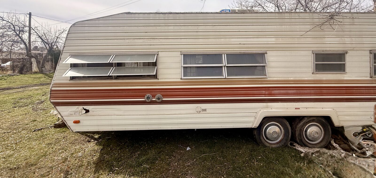 Venmo• Manufactured Sept 1980 • 25 ft length • Classic vintage layout What Works: • Generator runs • Refrigerator/freezer works • Furnace works • Water system operational • Tires are set • Hitch works – ready to tow Needs: • Roof leaks – needs sealing/repair • Some interior water damage • Cosmetic updates Ready to pull home. Sold AS-IS. We are located in Springville if you’d like to come and take a look If you’re interested, please give me a call at 801-376-8517