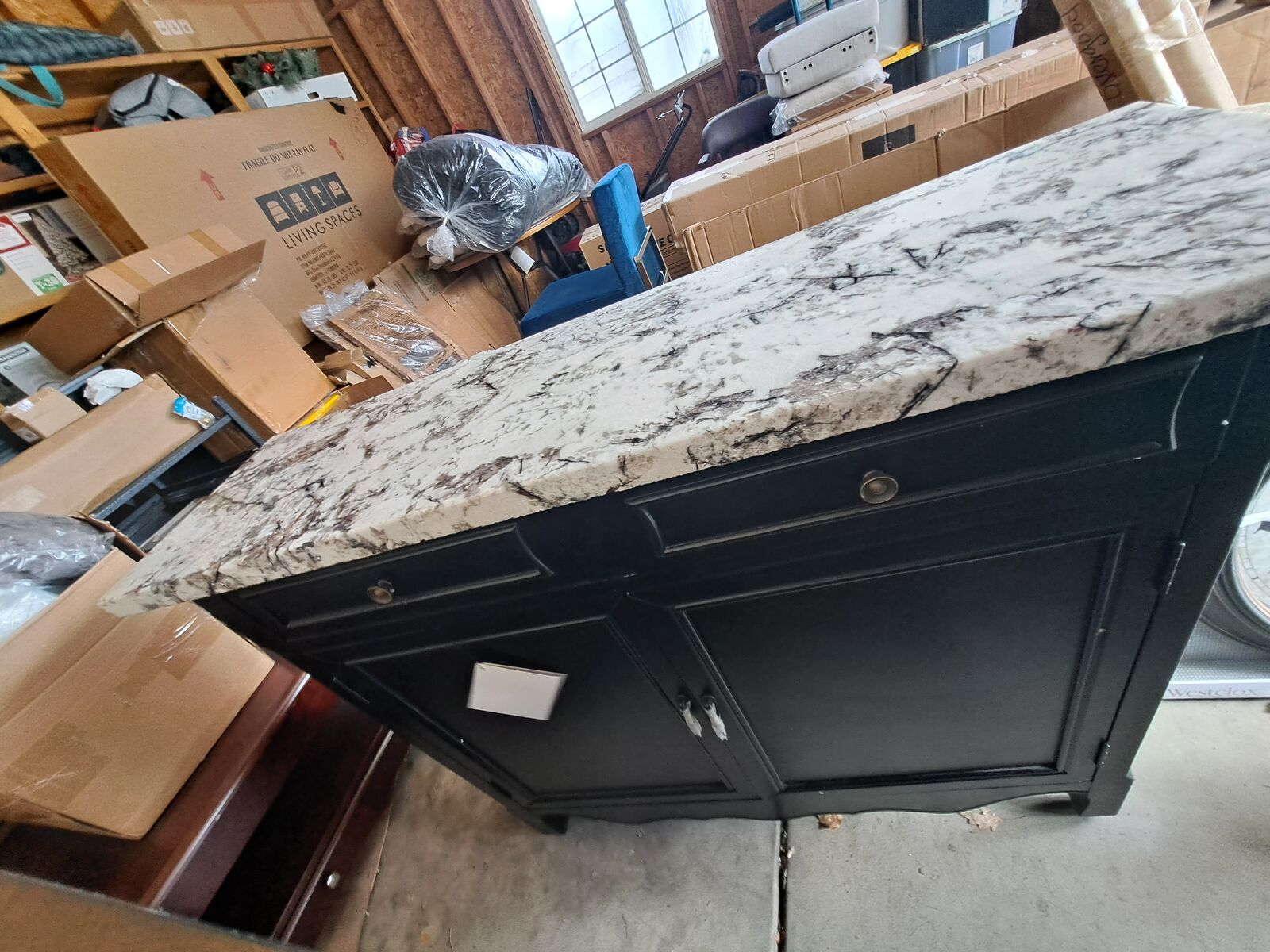 VenmoThis Powell 2 Door Console currently retails WITHOUT the custom 1 inch stone slab for $359. The designer for this piece removed the wooden top and replaced it with a luxury 1 inch thick granite slab with a gorgeous edge/finish that you have to see for yourself to appreciate. The first image was the artist's rendering of the desired end product, which you can see was achieved beautifully in the next image. This piece is truly one of a kind! We are storing nicely in our garage until its sells, must haul yourself. 42 1/4"L x 12"W x 37"H.