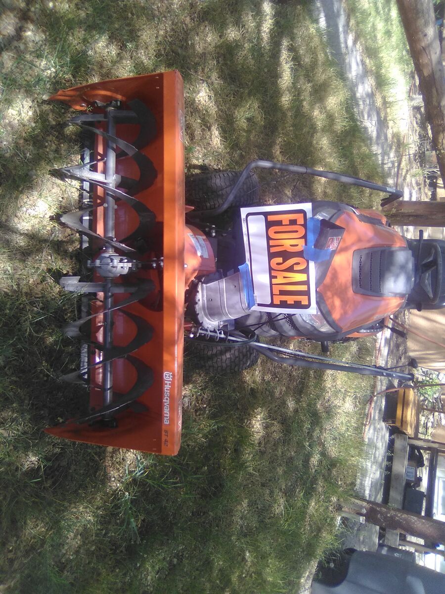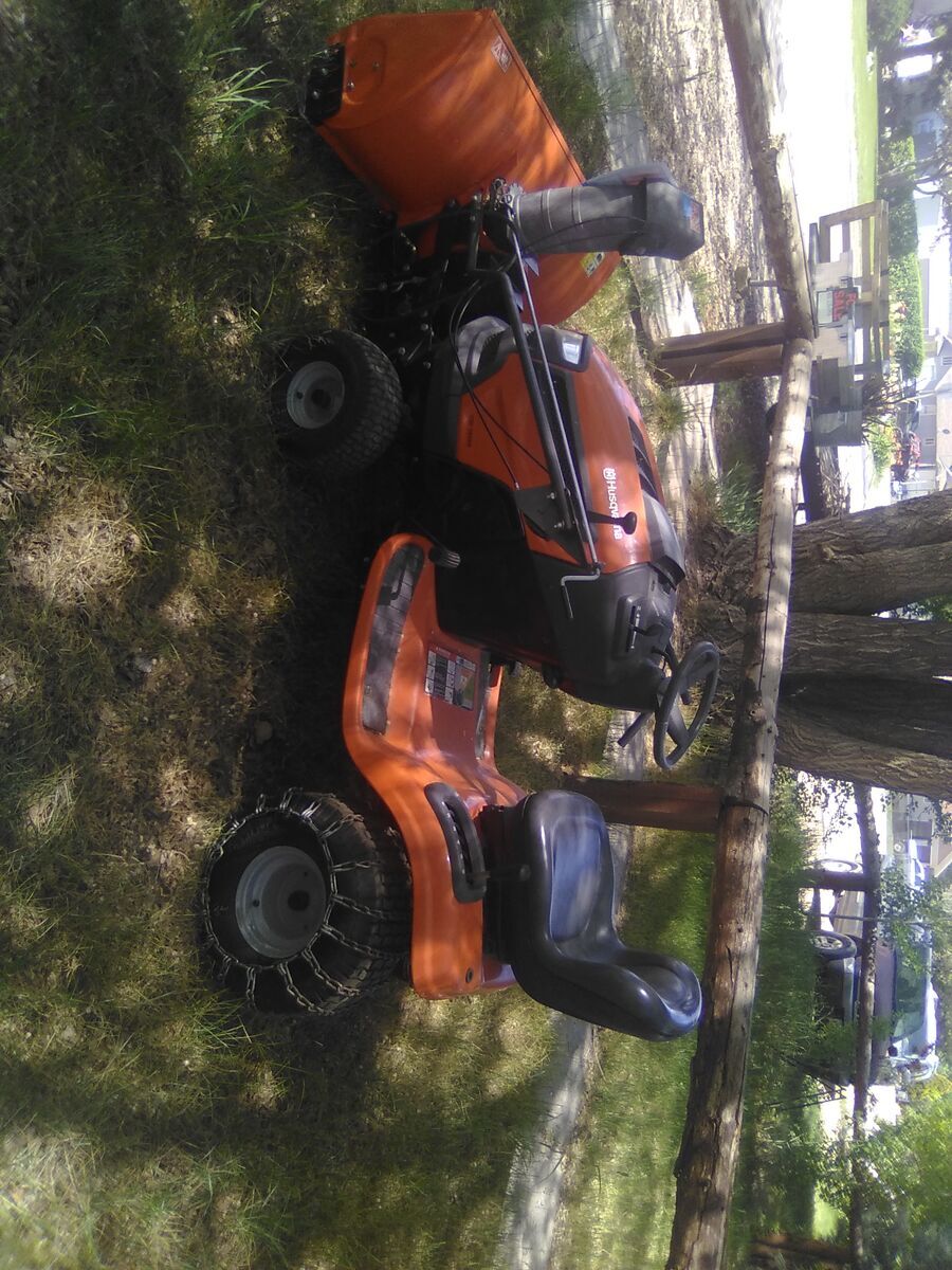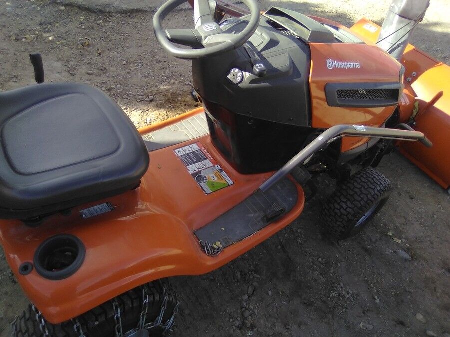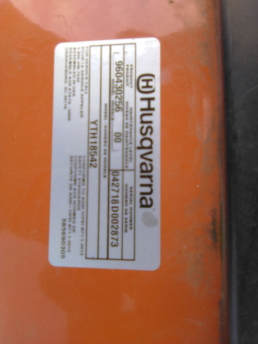 2014 Husqvarna riding lawn mower with 18.5 HP engine. Runs strong and ready to work.