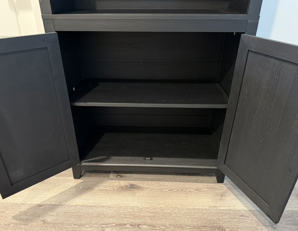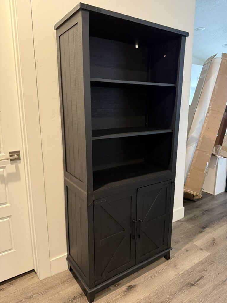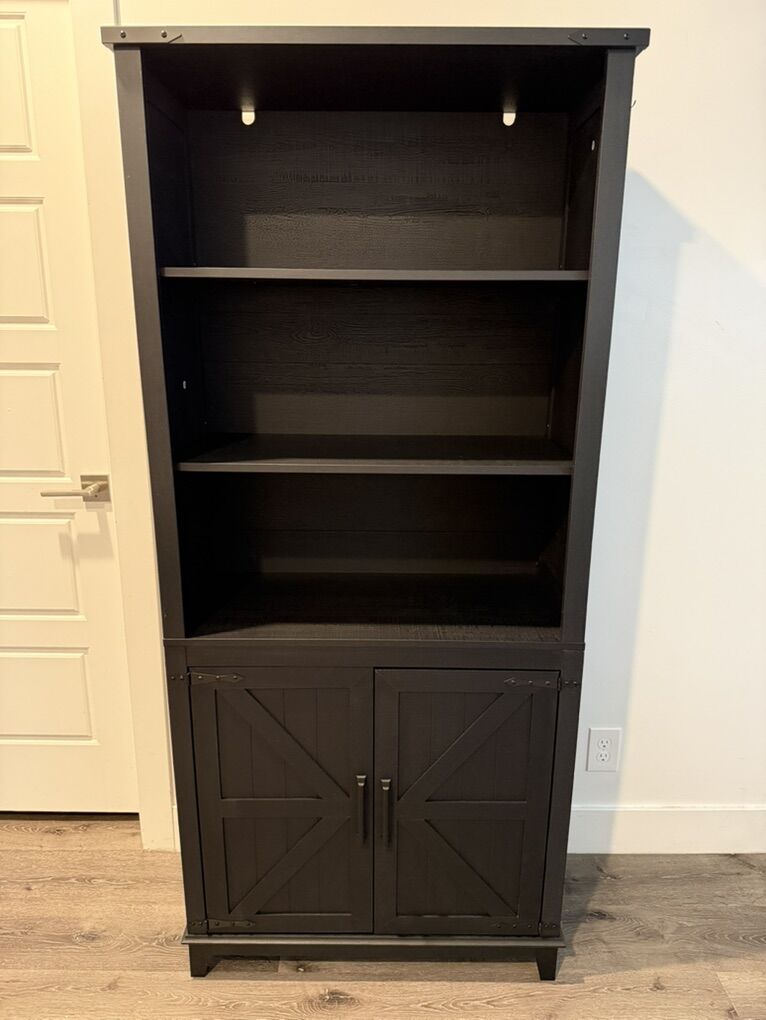 VenmoBrand New 70in Tall Bookshelf 5 Tier Bookcase with Barn Doors and Adjustable Shelves, Farmhouse Book Shelf with Storage Cabinet, Wood Freestanding Display Bookshelves for Bedroom, Living Room