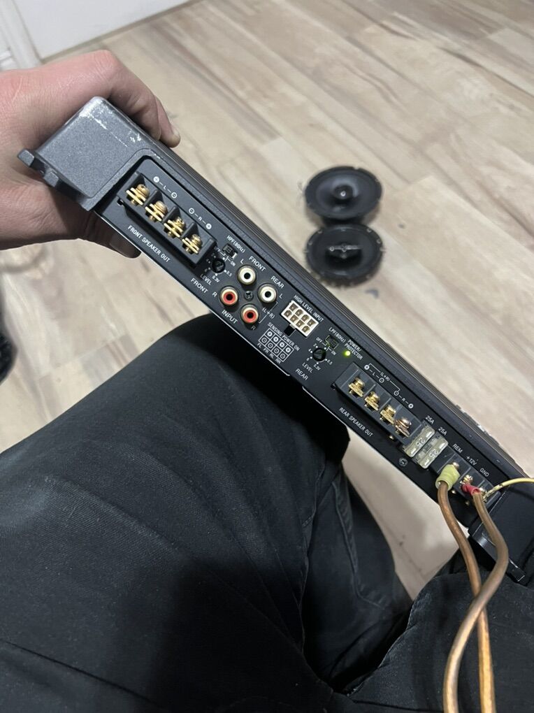 Sony Complete sound system Stereo BLUETOOTH extra bass out puts FM USB AUX microphone 2 Sony speakers 6.1/2” and 2 skart 6.1/2” sony 600 watts Amp 4 channels