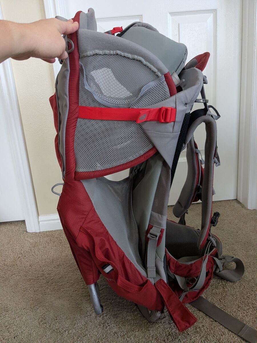 VenmoIt's a great backpack for hiking with kids! We have loved it! It quickly and easily adjusts for different torso lengths (for the adult carrying the backpack), has a pop-up sunshade, a storage area that sits under the child, and an insert for using with an infant. It is over 10 years old so the elastic has deteriorated a bit and there are a few nicks/scraps on the backpack.