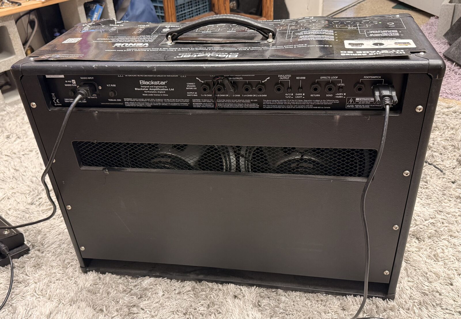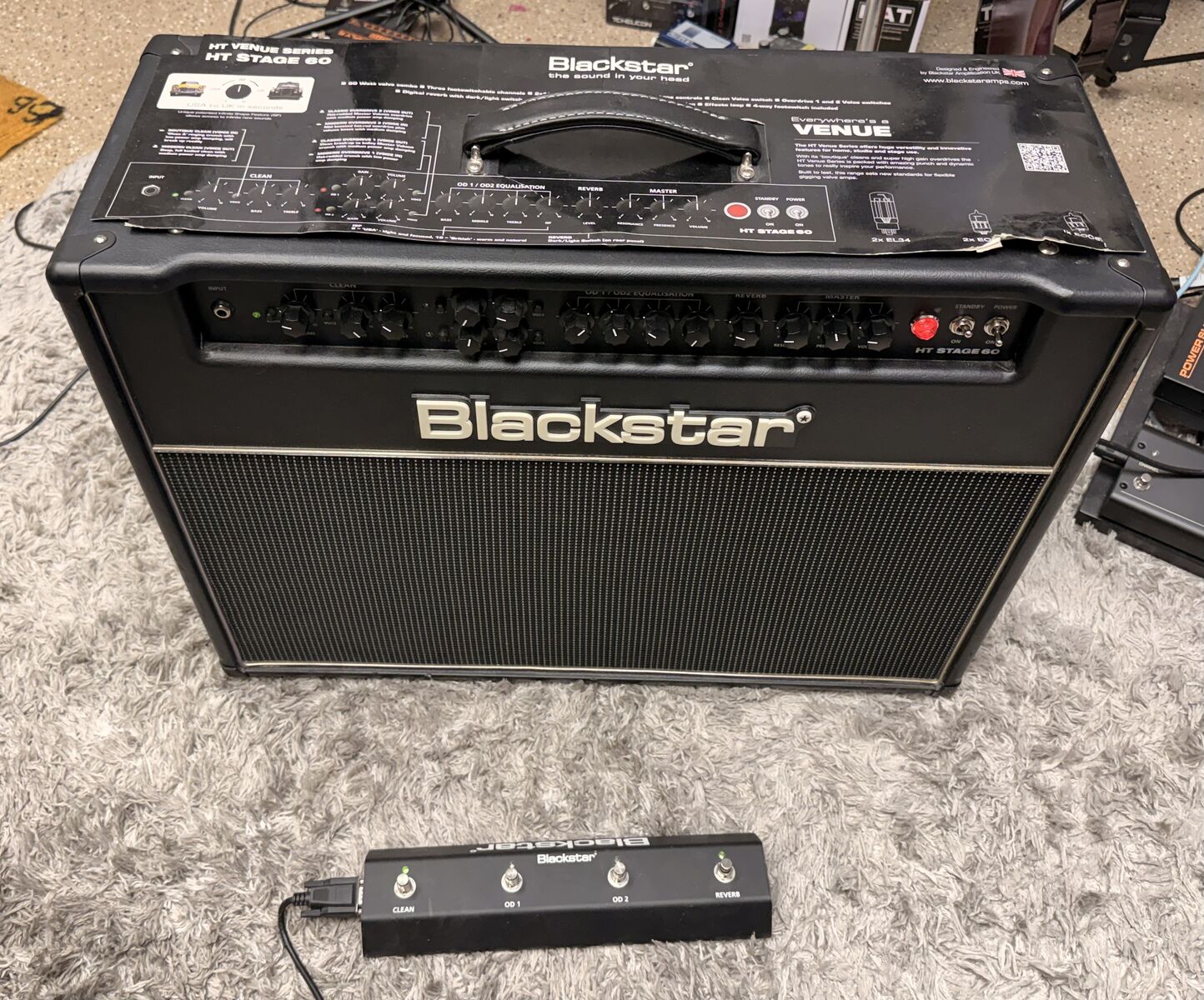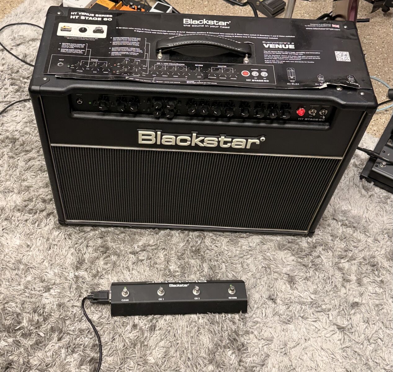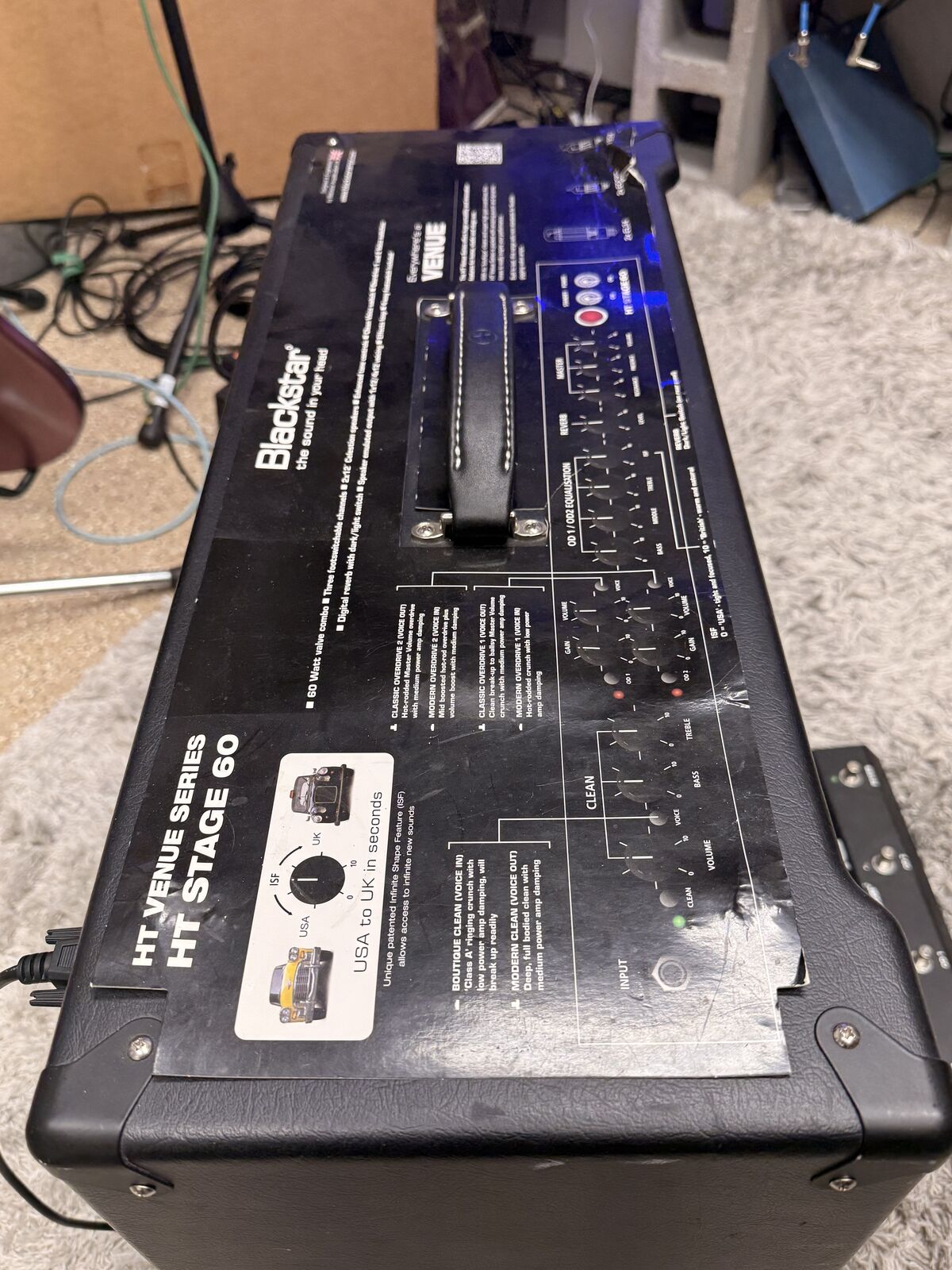 3 Channel 60 watt all tube amplifier. 2xEL34 power tubes and 2x12-inch Celestion speakers. 3-band EQ, ISF (Infinite Shape Feature), Master Volume, Presence controls. Digital reverb (dark/light) Includes FS-7 4-way footswitch. Effects loop with level switch. Excellent condition (minor tear/scrape see pictures).
