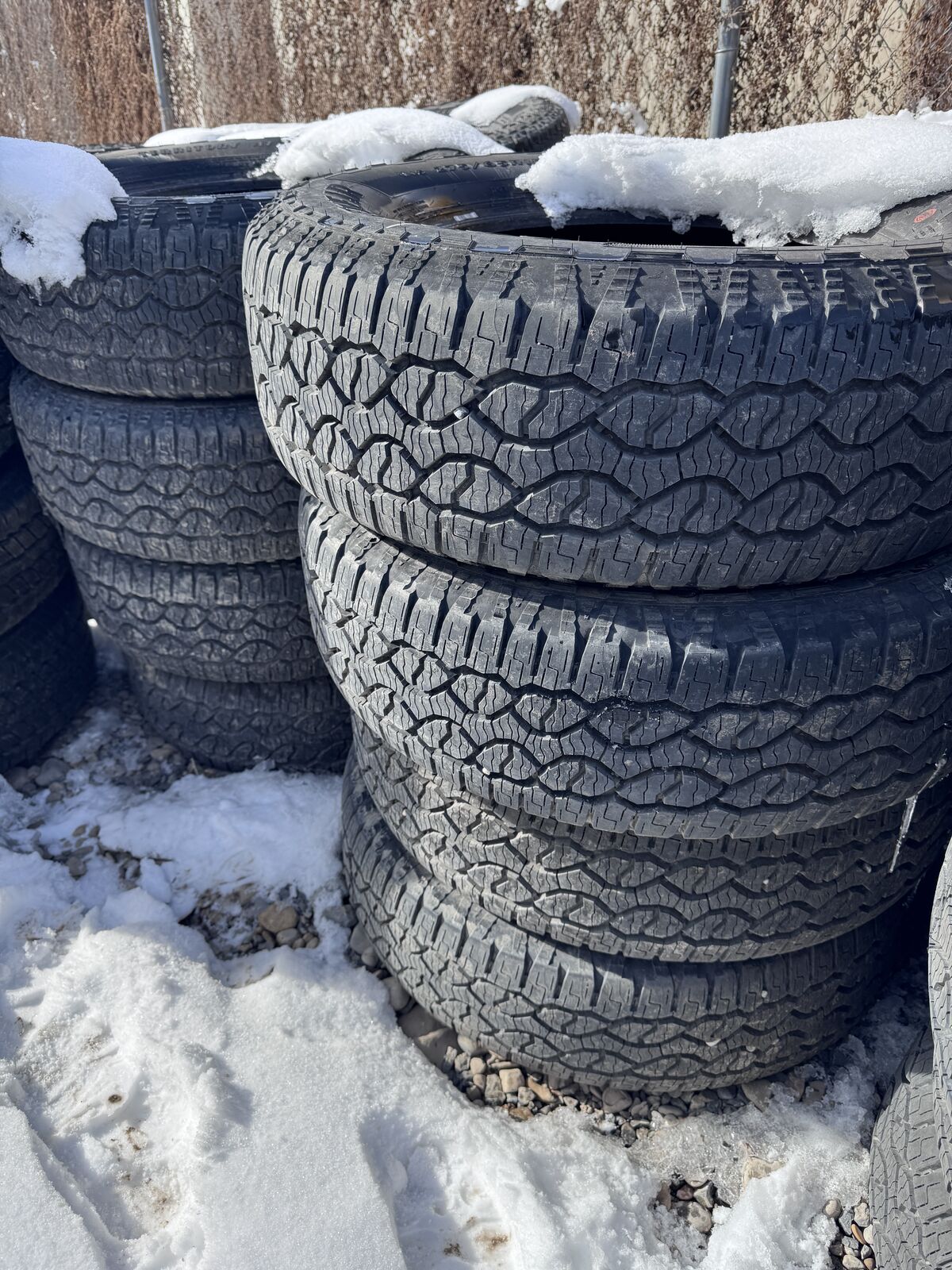PayPalThese mud and snow, all terrain tires came off of new 2025 Ford F150s that had 200-300 miles on them. Size is 275/65R18. They are still in new condition. Date stamp on them ranges from the 18th week of 2024 to the 43rd week of 2024 (1824-4324). I need to get rid of them. I have approximately 40 of them. I'd prefer to sell them in sets of 4 or pairs. The more you buy the less they'll cost.
