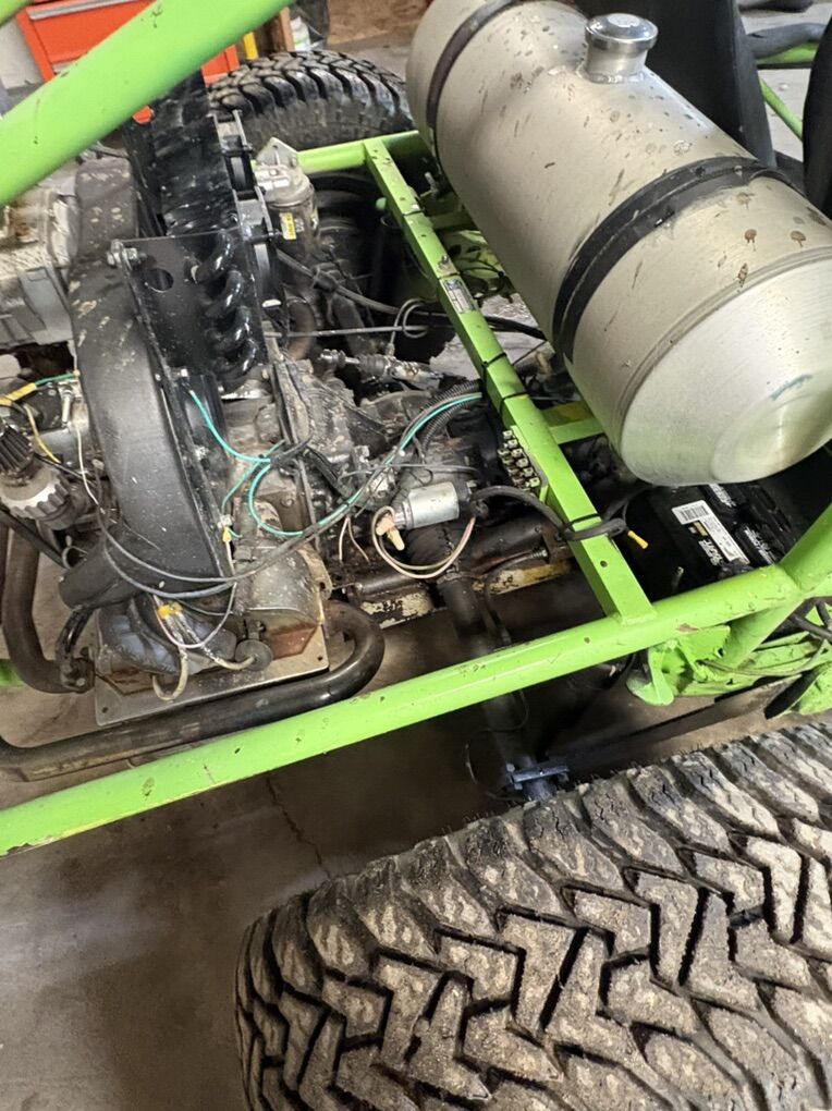 Runs and drives great! Has a brand new battery in it comes with paddle tires for the rear and dirt tires for the front. everything works as it should. 1600cc flat 4-cylinder supercharged engine, 4-speed manual transmission air cooled engine. Need gone. Needs throttle cable other and maybe alternator!