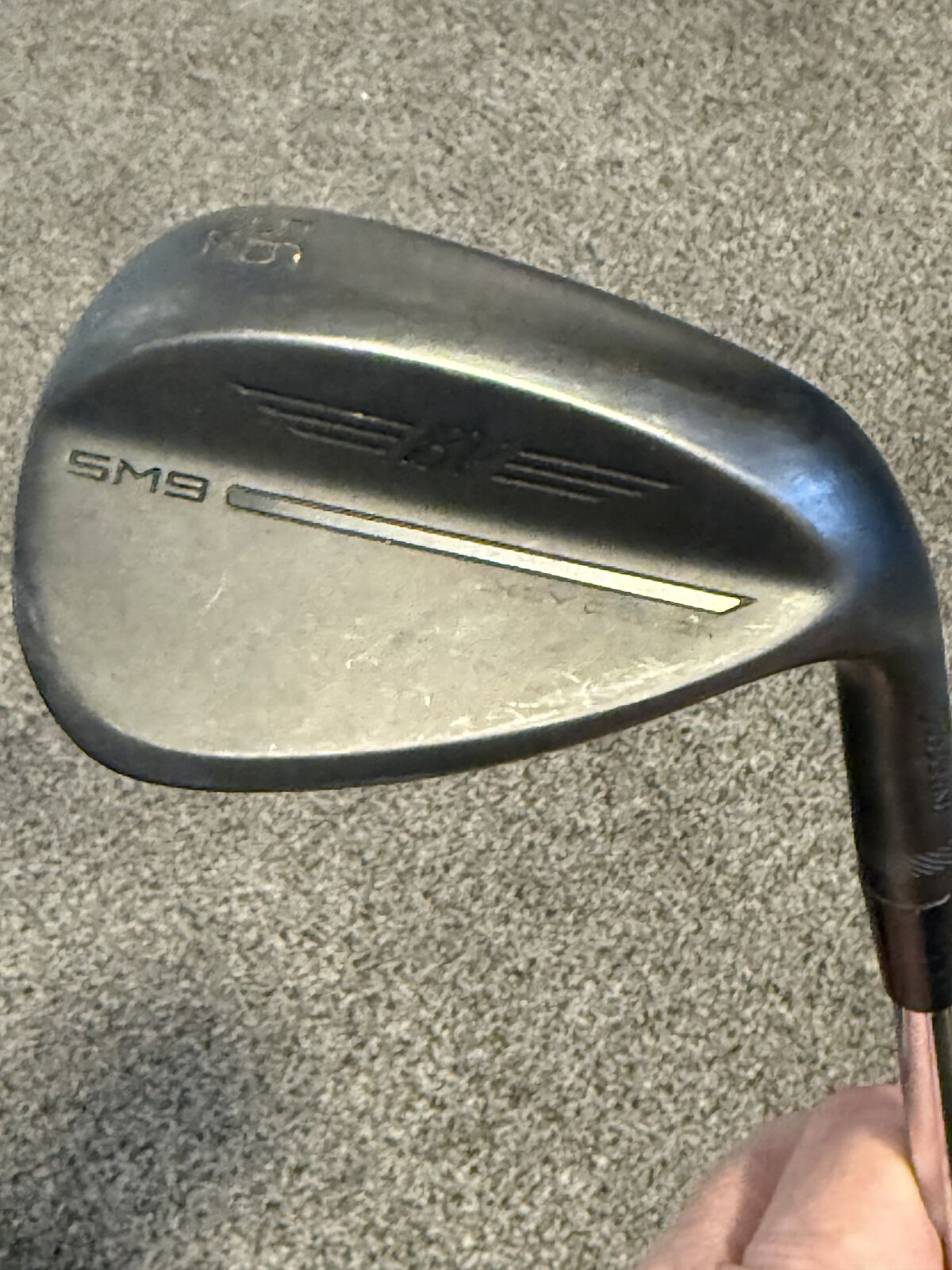 Good condition 56 10 S Grind Jet Black finish SM9 wedge. I lost this wedge, so I went and bought a new one, only to have this turned in a couple weeks later after I bought this one. It’s been sitting in my garage for a few years. I kept the new one in the bag. This may have 20 balls hit on it. Not interested in trades Text is best