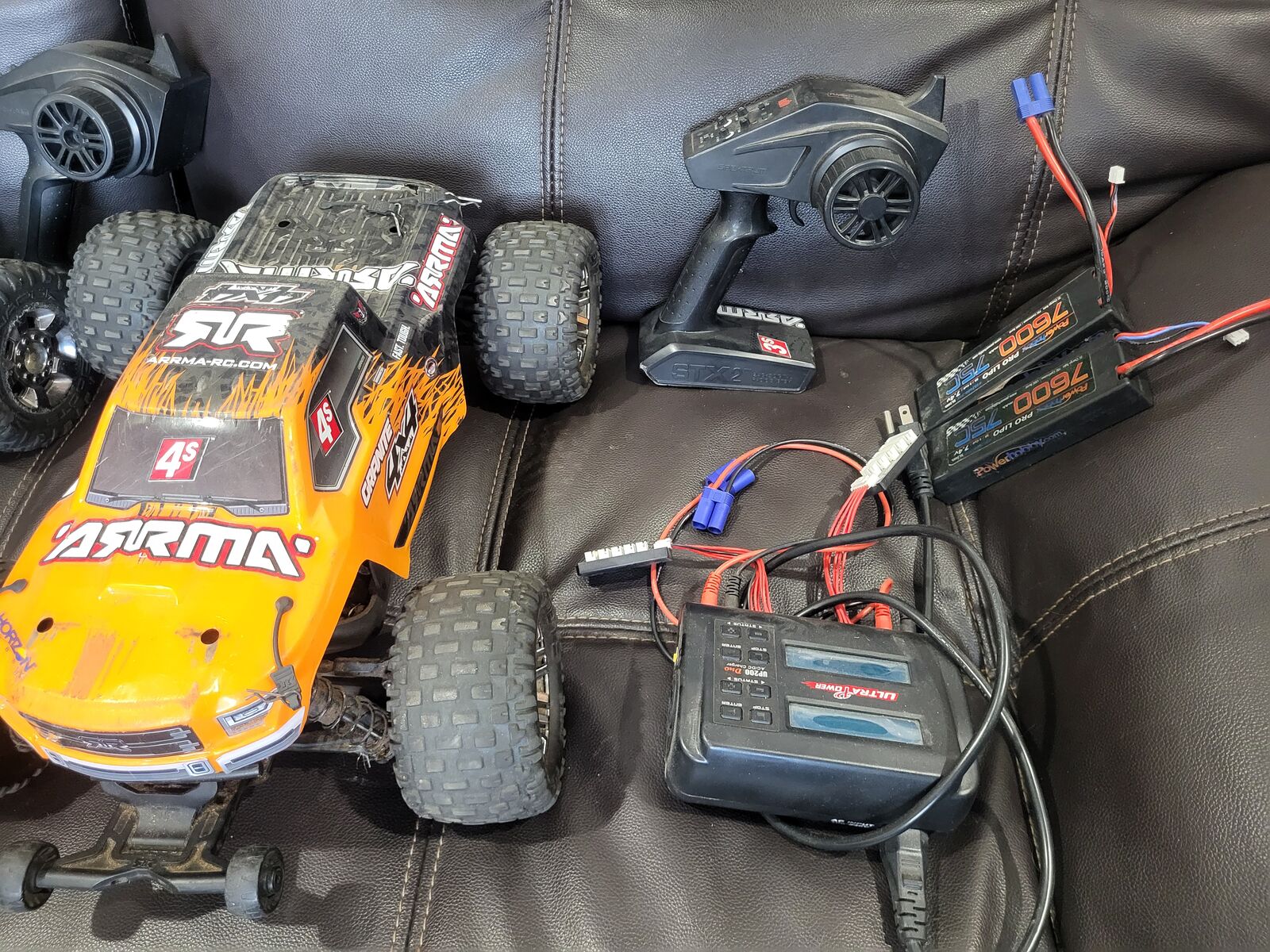 2 Armni 2 s rc cars for sale, Both cars run strong and both have back up bateries. Selling as package deal. comes with 4 bateries 2 are 7600mah and 2 are 5000 mah all bateries are pro lipo 7.4 volt, one up 200 duo ac/dc charger. Both cars have controlers and both cars are verry fast if i had to guess 35-40mph. I am selling because kids lost interest. First $ 500 takes it all I paid well over $1000 originaly. Call Brian 435-467-7366