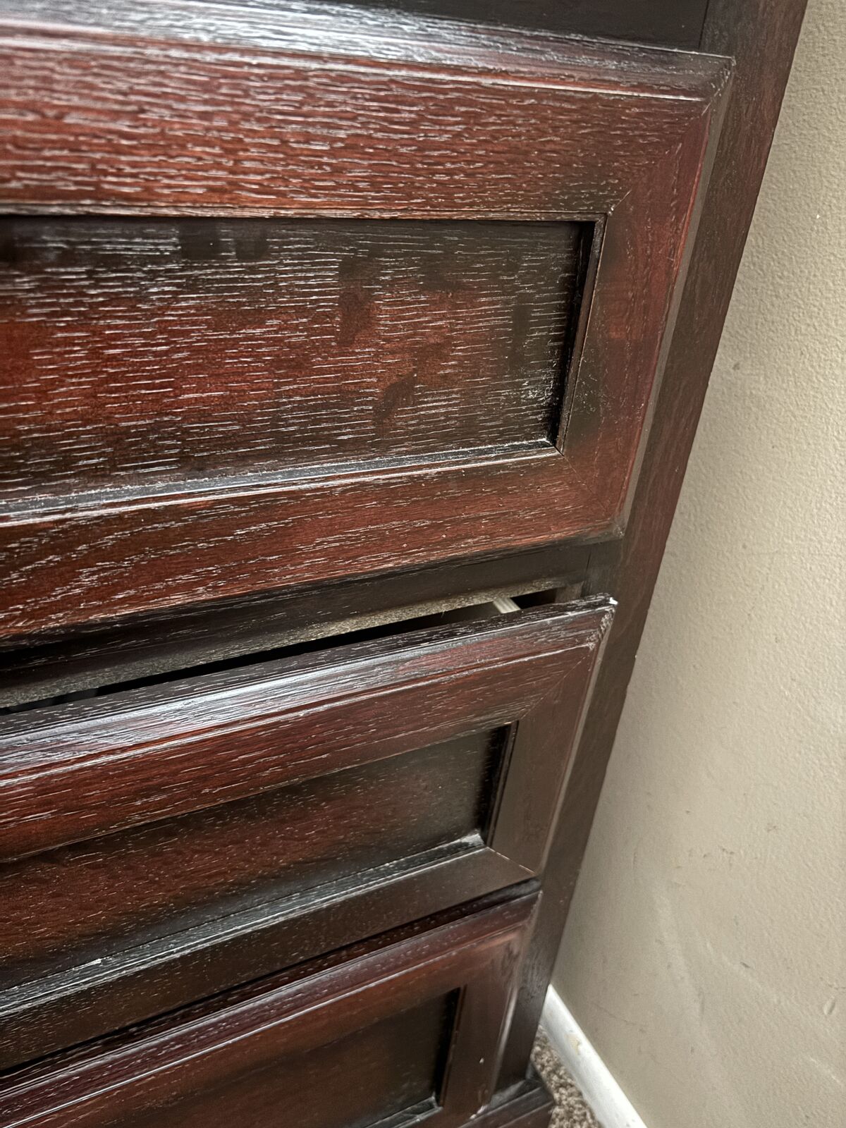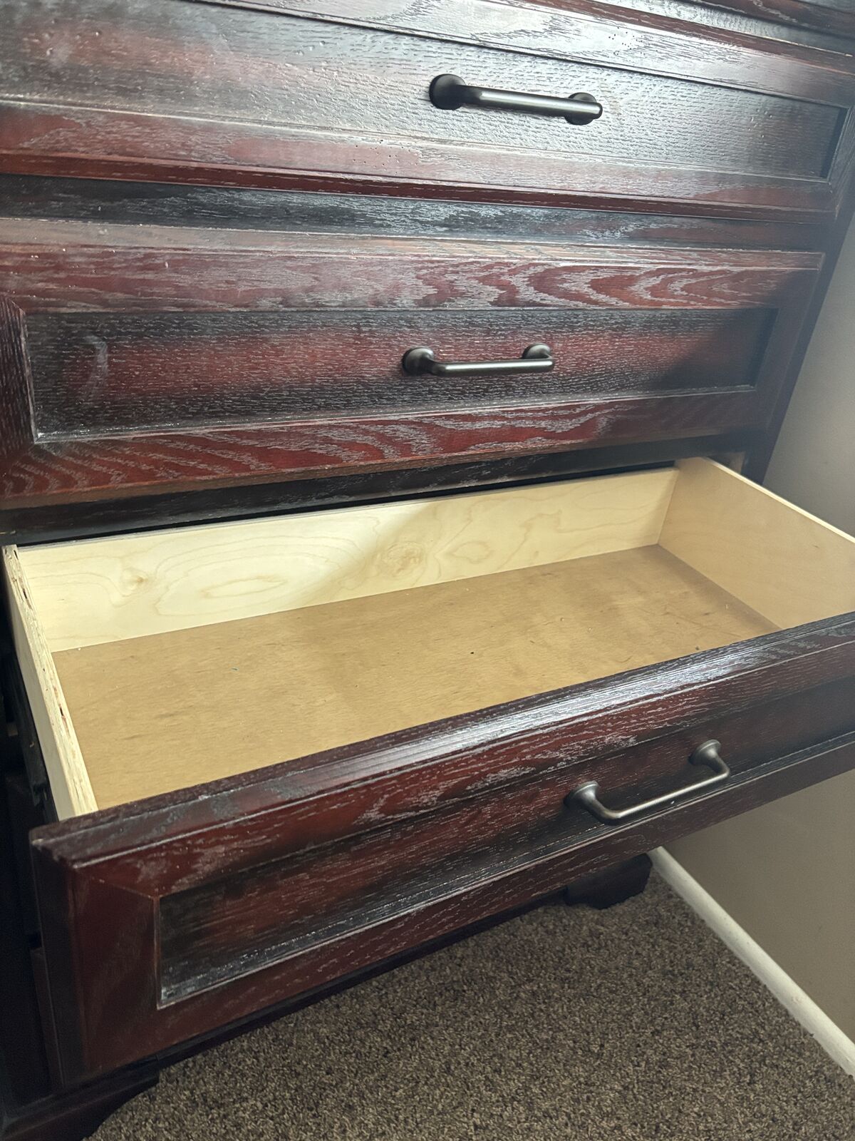 PayPal5 Drawer Dresser. Used, but good condition. Fourth drawer down off track a bit due to loose hardware, but still pulls in and out easily and can be fixed.
