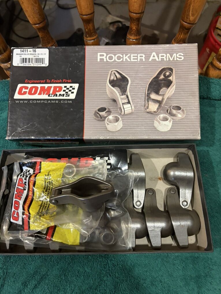 Compcams Hi Energy roller tip rocker arms for big block Chevy. Includes ball trunions and nuts. These are new in the box.