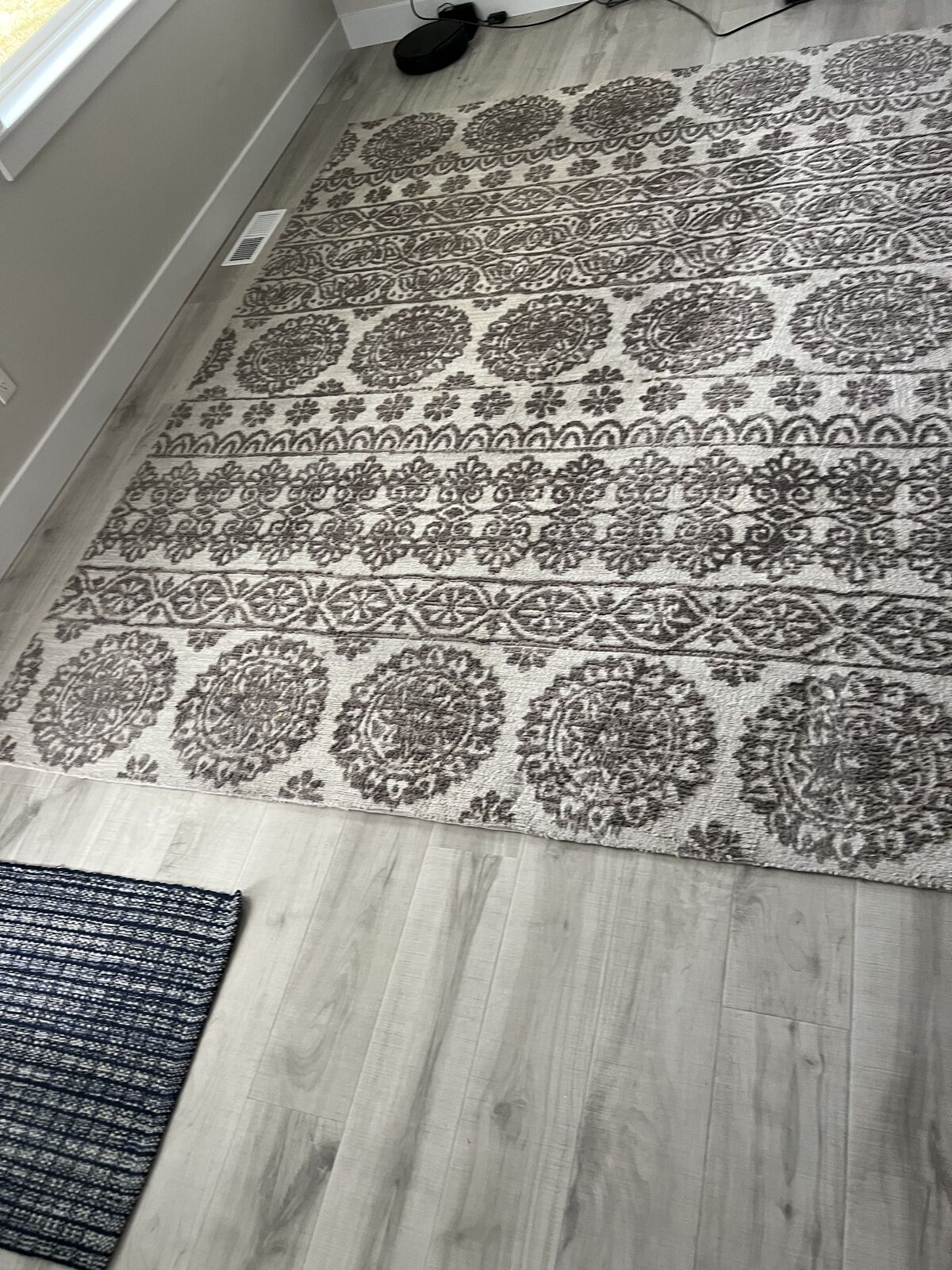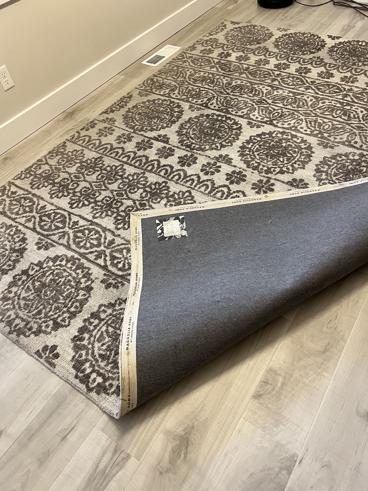 Venmo8 x10 magnolia Home by Joanna Gaines area rug. Gray and cream with pattern. Gently used - has been under a table.