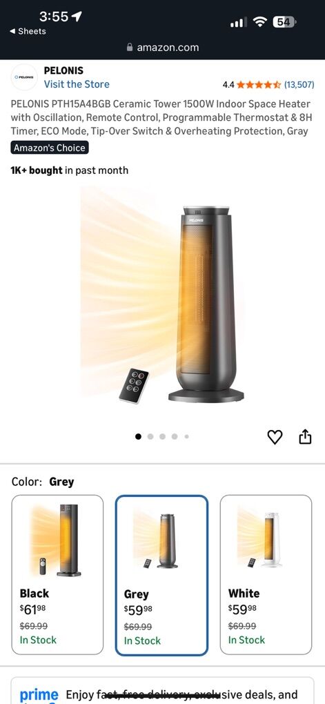 • Powerful 1500 W ceramic heating for fast warmth • Oscillation & remote control for even heat distribution  • Programmable thermostat with multiple heat settings  • Safety features including tip-over & overheat protection  • Quiet operation — great for bedrooms, living rooms, offices