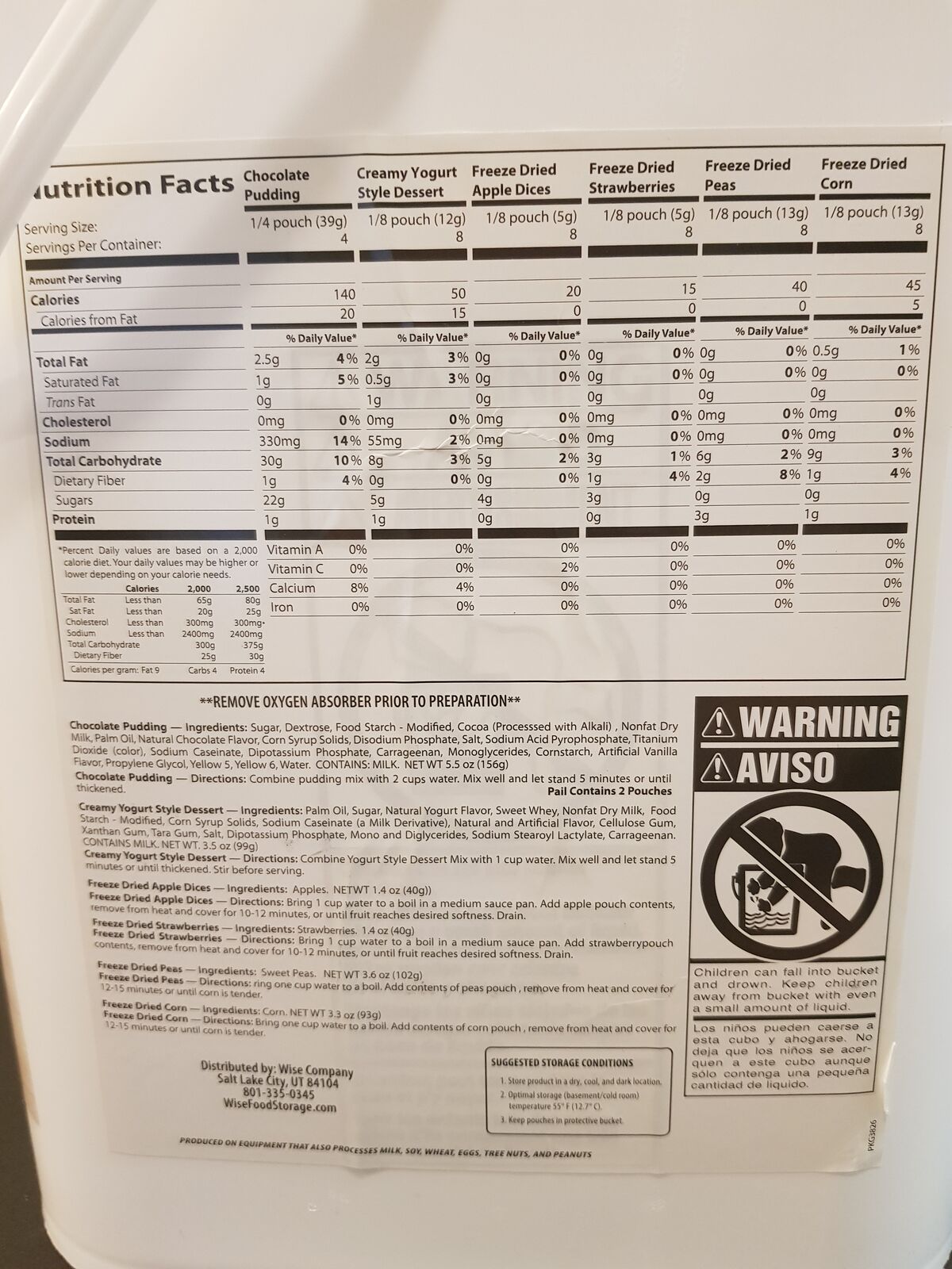 PayPalI have two of these Food Storage Wise Company Ultimate Variety Pack - 124 Servings - they're only about 3 years old and have a shelf-life of 20-30 years. I'm selling each for $75.