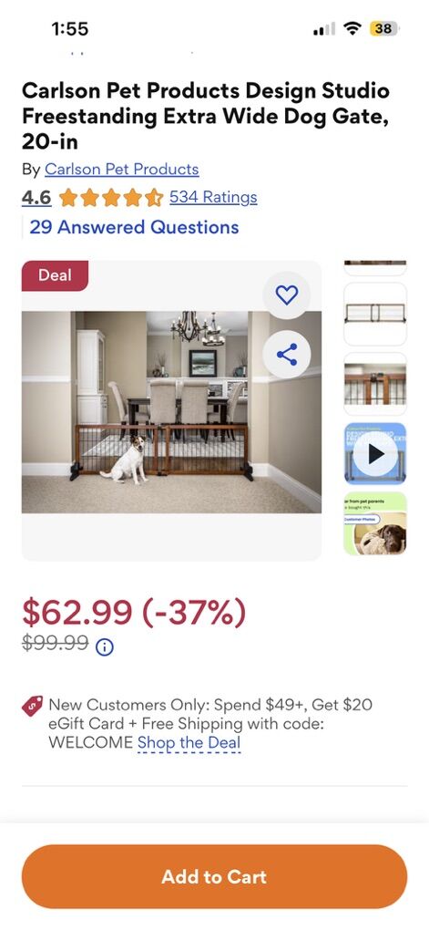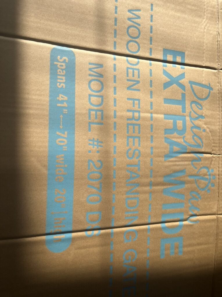 VenmoThis is a brand new in the box, expandable pet barrier from Design Paw, it is freestanding on feet and expands from 40 to 71 inches wide and it’s 20 inches high, has a dark wood frame with metal spindles. I have several of these if you’re looking for more than one to block off a big area, or just a normal door entry.