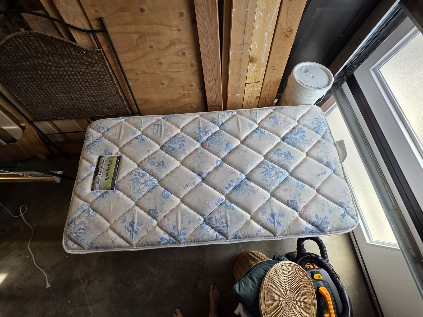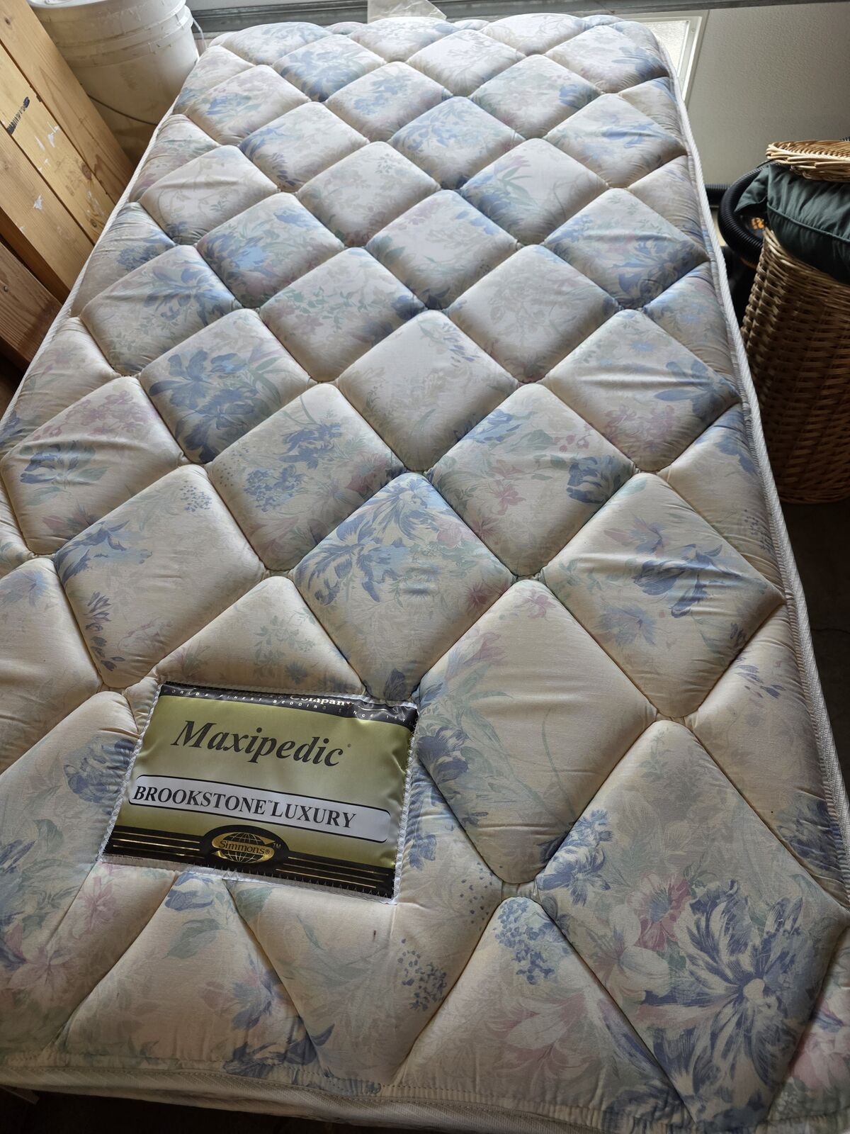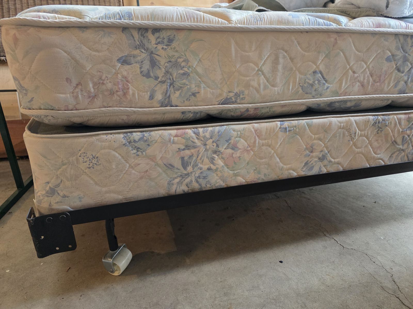 VenmoTwin bed, mattress, frame, and bedding included. Also includes a decorative headboard that doesn't attach. Twin mattress was purchased and used as a bed for occasional overnight guests. Was not in a pet home.