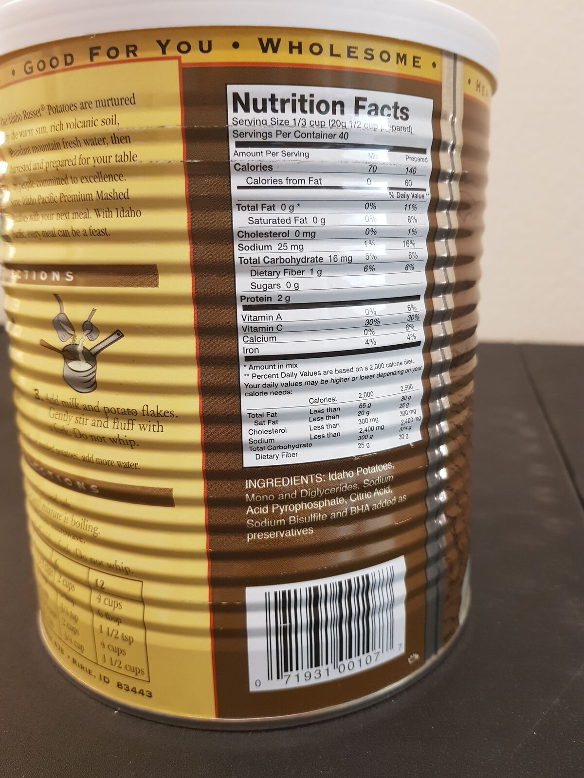 PayPalI have 6 of these #10 mashed potato cans. All unopened and in great condition, each selling for $5. You can buy them as singles or all for $30, up to you!