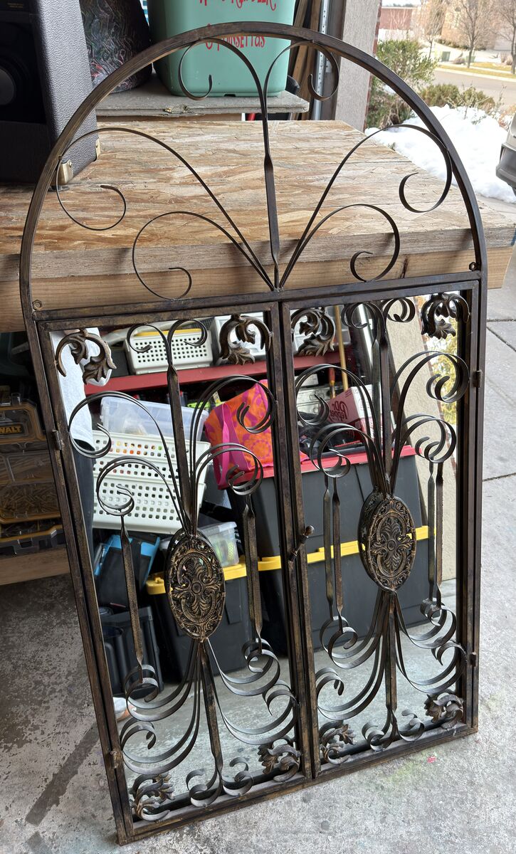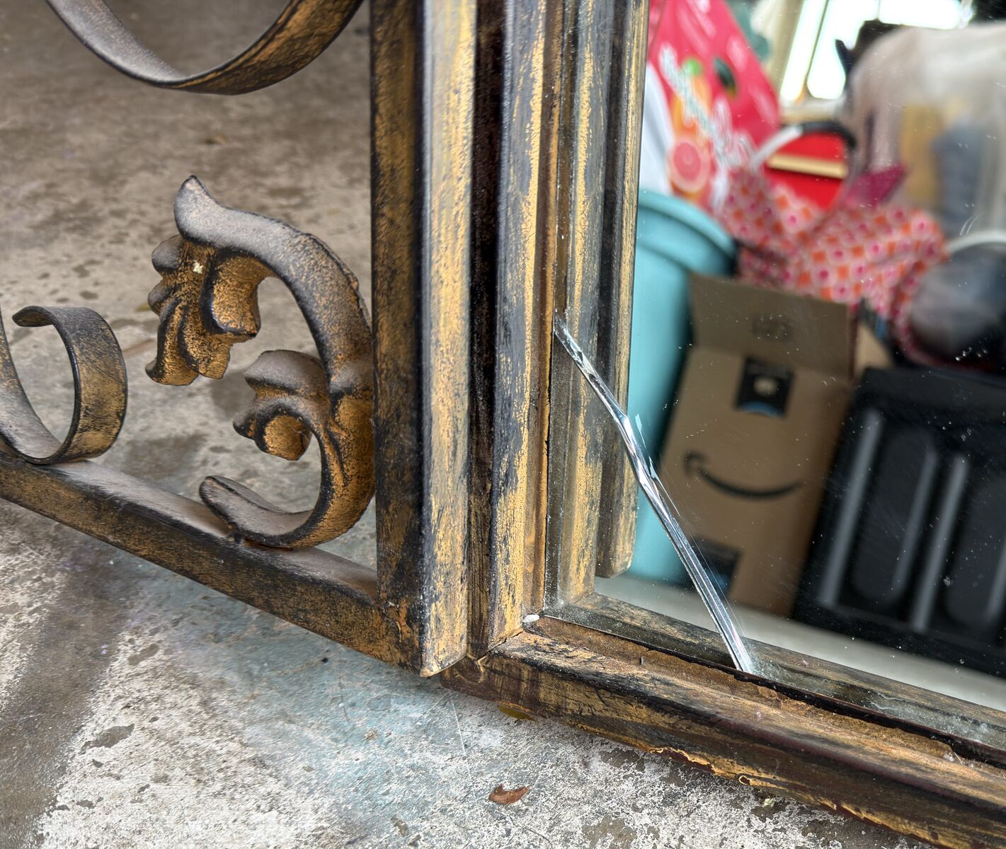 VenmoNice heavy mirror, small crack, you'll still look beautiful!! 31 inches by 40 inc glass, 55 inches to top of arch.