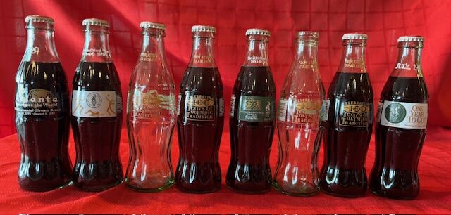 VenmoThis is a collection of Olympic Coca Cola (Coke) memorabilia—21 bottles, 4 cans, 11 pins, and 1 fridge magnet from various Olympic Games. The pins include a set of 5 Salt Lake City pins and 6 additional Coca Cola Olympic pins. The bottles include 4 Beijing aluminium Coca Cola bottles, 5 Salt Lake City bottles, 8 Atlanta bottles, 2 torch run bottles, and 2 Barcelona bottles. The 4 cans are opened and from various Olympics. A great deal. All items $115. (Check out my Coca Cola Christmas, commemorative events, foreign, and miscellaneous collectable items posts coming soon.)