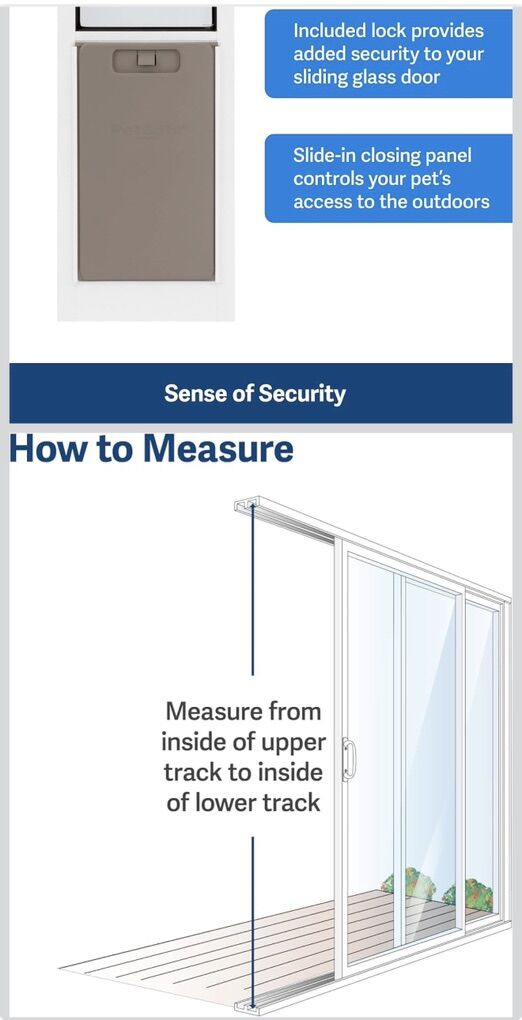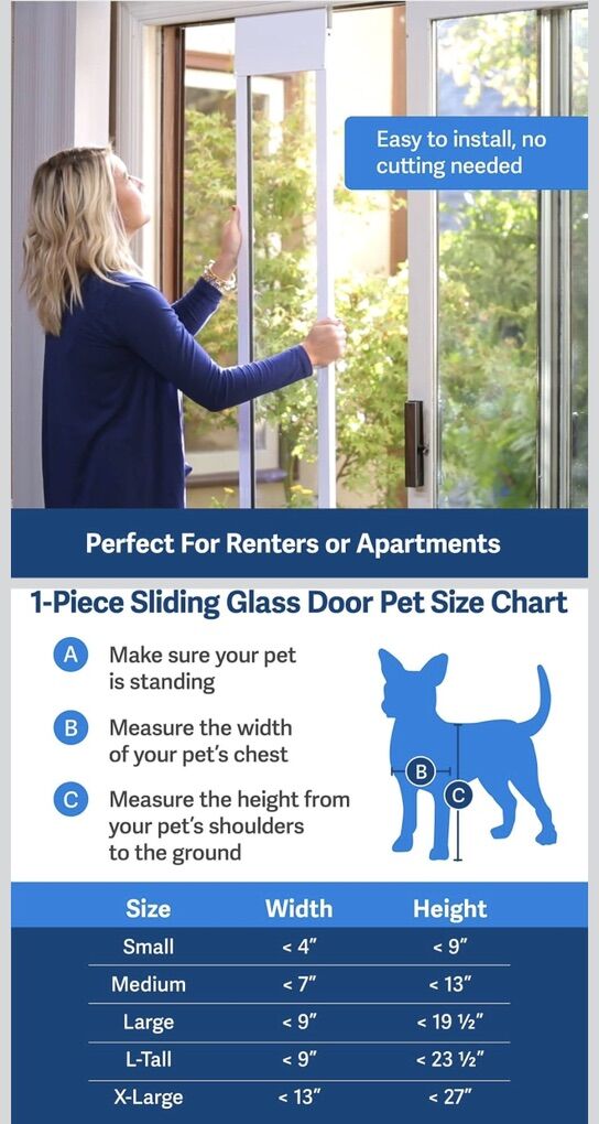 VenmoNo-Cut DIY Install: The PetSafe Sliding Glass Pet Door installs easily into your sliding glass door track, perfect for apartments or rentals with no drilling or permanent alterations required • Weatherproof & Secure: Features a magnetic flap, shatter-resistant glass, human door lock kit, and pet door closing panel for convenient, energy-efficient, and safe pet access in any season • Flap Sizes for Every Breed: Designed with small dogs in mind, this sliding glass dog door boasts a flap opening of 5/14 W × 8 3/16 H, accommodating pets up to 15 lb • Global Mission, Local Care: With U.S. roots and worldwide reach, PetSafe delivers vet- and trainer-recommended solutions and exceptional customer support to create fields of joy for pets • 25 Years of Trust: Since 1998, PetSafe has created safe, innovative, and trusted products that bring joy, enhance pet lives, and support the lifelong bond between pets and their families • Easily install a pet door in your existing sliding glass door- no cutting required • Great for apartments or condos- take the door with you when you move • Durable aluminum frame including weather stripping and slide-in closing panel for weather resistance • Three colors available to fit your décor - White/Satin/Bronze • Four pet door sizes to fit a wide variety of pet heights and weights • Includes flexible, tinted flap with magnetic closure and latch kit for locking • Call, chat or email with our expert