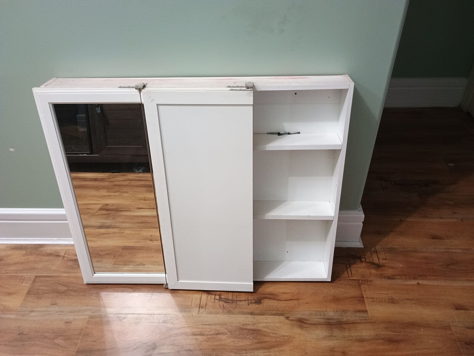 Venmo36 inches wide, 28.75 inches tall, 2 adjustable shelves (plus the bottom). 3 doors, works well, I just wanted a different style. Comes with screws.
