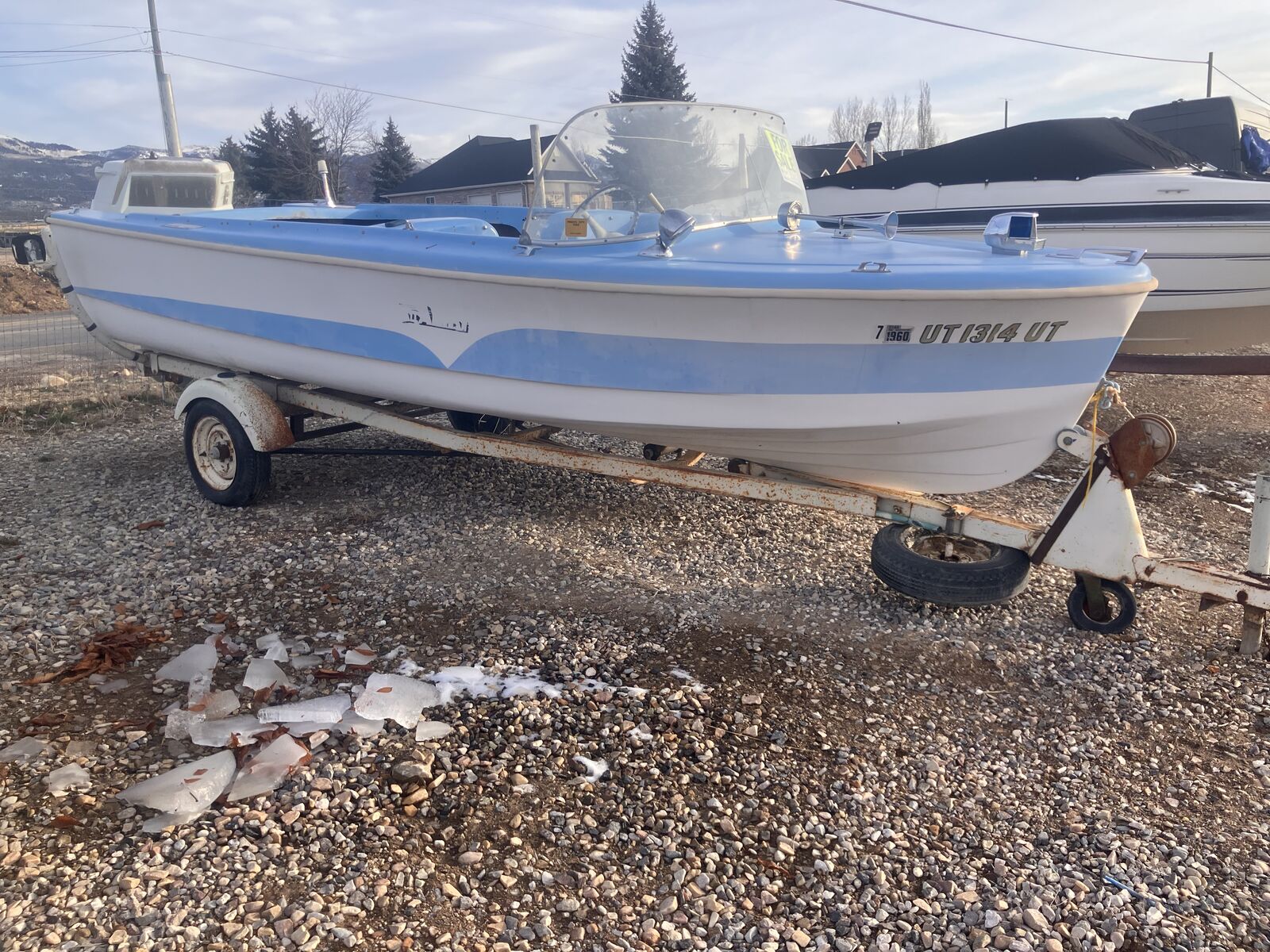 1960 boat half done project does need a lot of work done to it, it need a fuel tank and battery, I do not have the title but I do have a bill of sale and I started to resin the floors the owner before said it ran the summer before if you have any questions contact Jamey at 435-851-4501