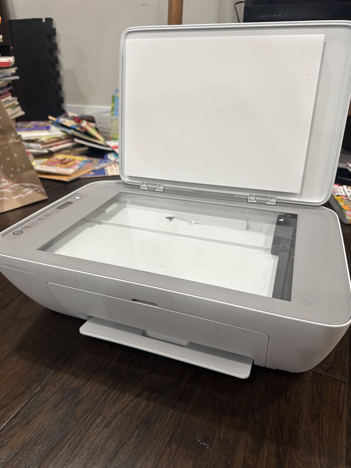 Reliable HP DeskJet 2755e all-in-one printer. Has print, scan, and copy functions. Comes with power cord.