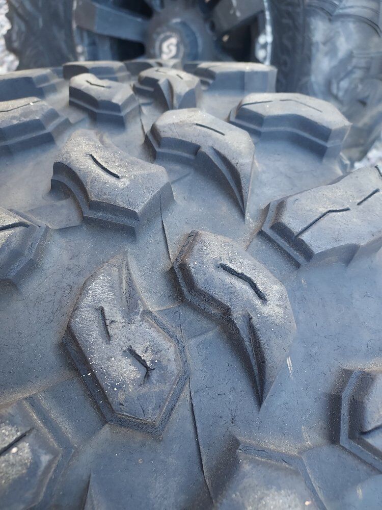 5 wheel and tire, slightly used. The 5th is the spare. Maxxis 35x12.5x17 Carnivores. on a Tusk Wheel with nuts and tool. they are a 4-156, 4-3 offset, (Polaris) pattern. lightly used before or new machine showed. Rocky Mountain is $278 a tire only then add the Wheel