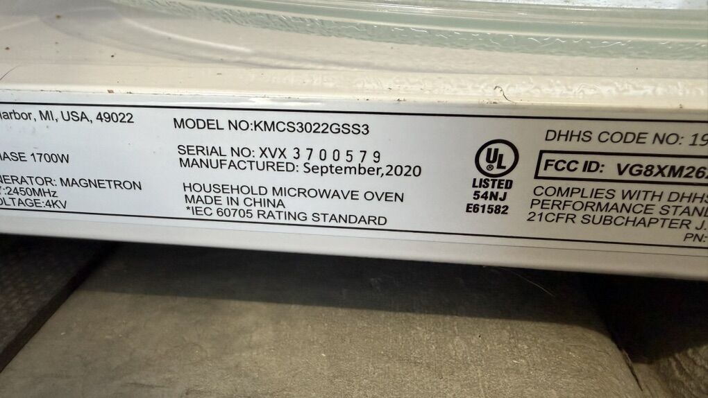KitchenAid KMCS3022GSS3 microwave. Barely used, excellent condition.