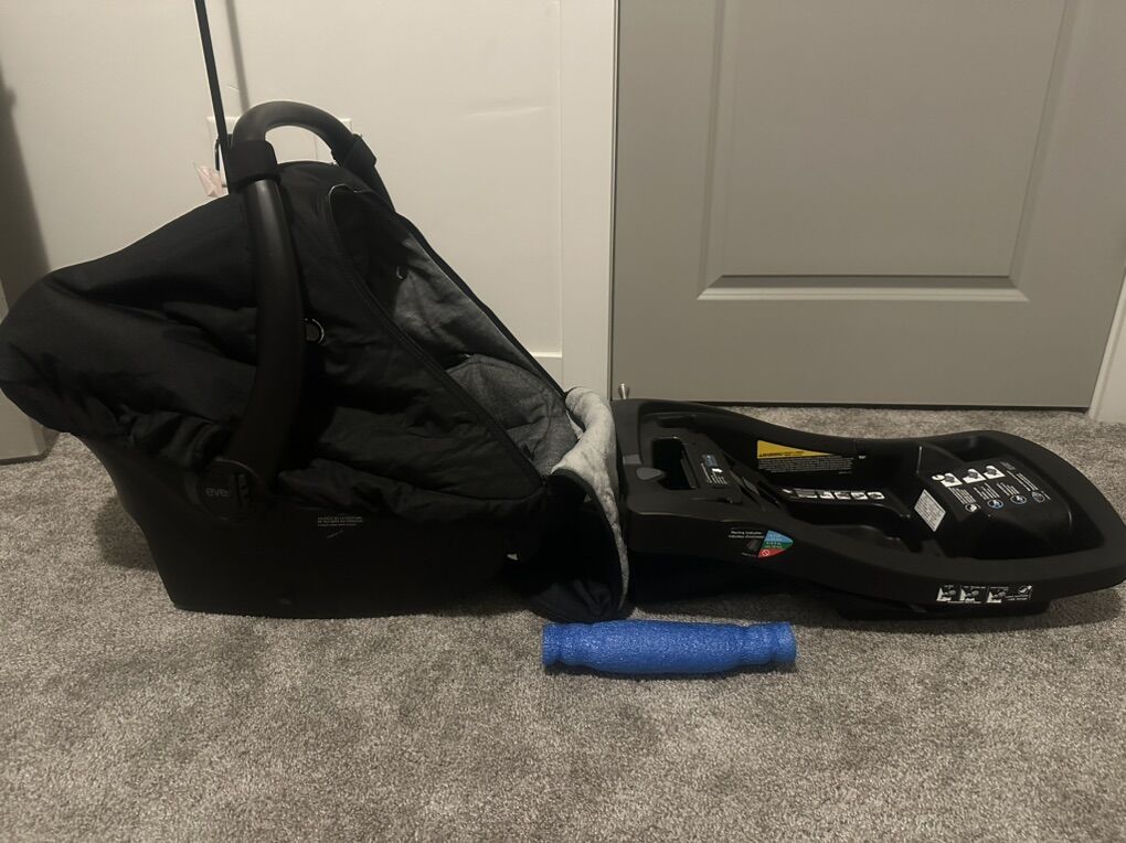 CashAppEvenflo car seat, car seat base, winter cover, noodle (to balance the car seat in car). 4lbs-35lbs