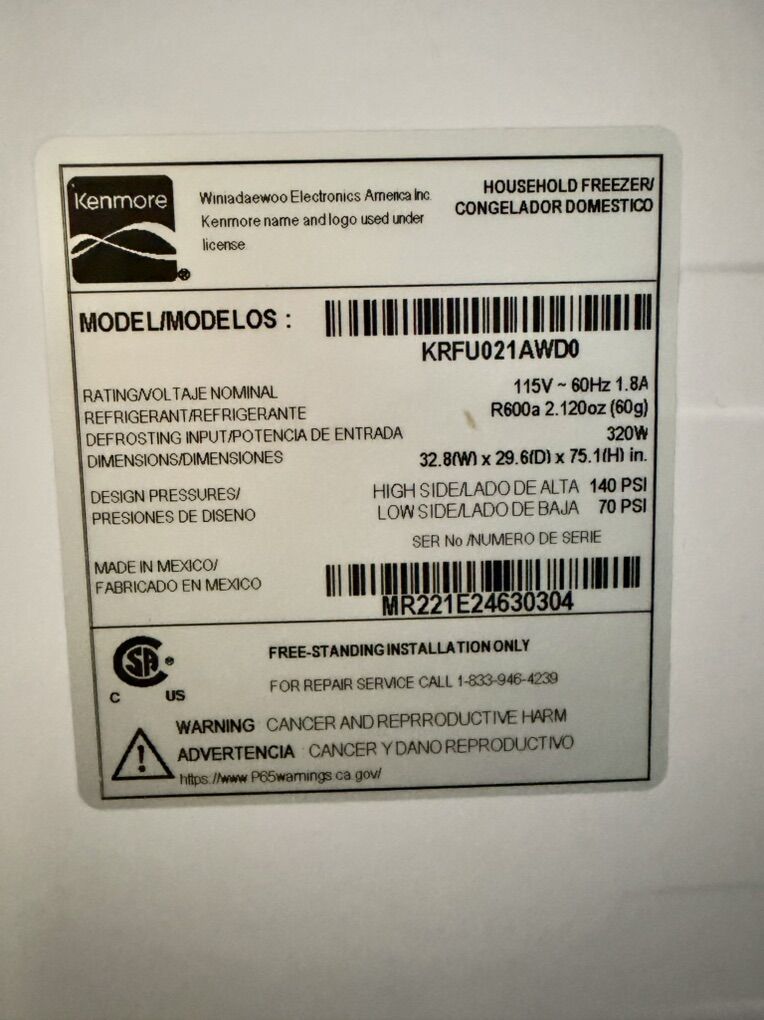 It’s clean, working and in good condition Frost free 21cu feet 30 days warranty Measurements last pic $300 Cash only Pick up in Clearfield