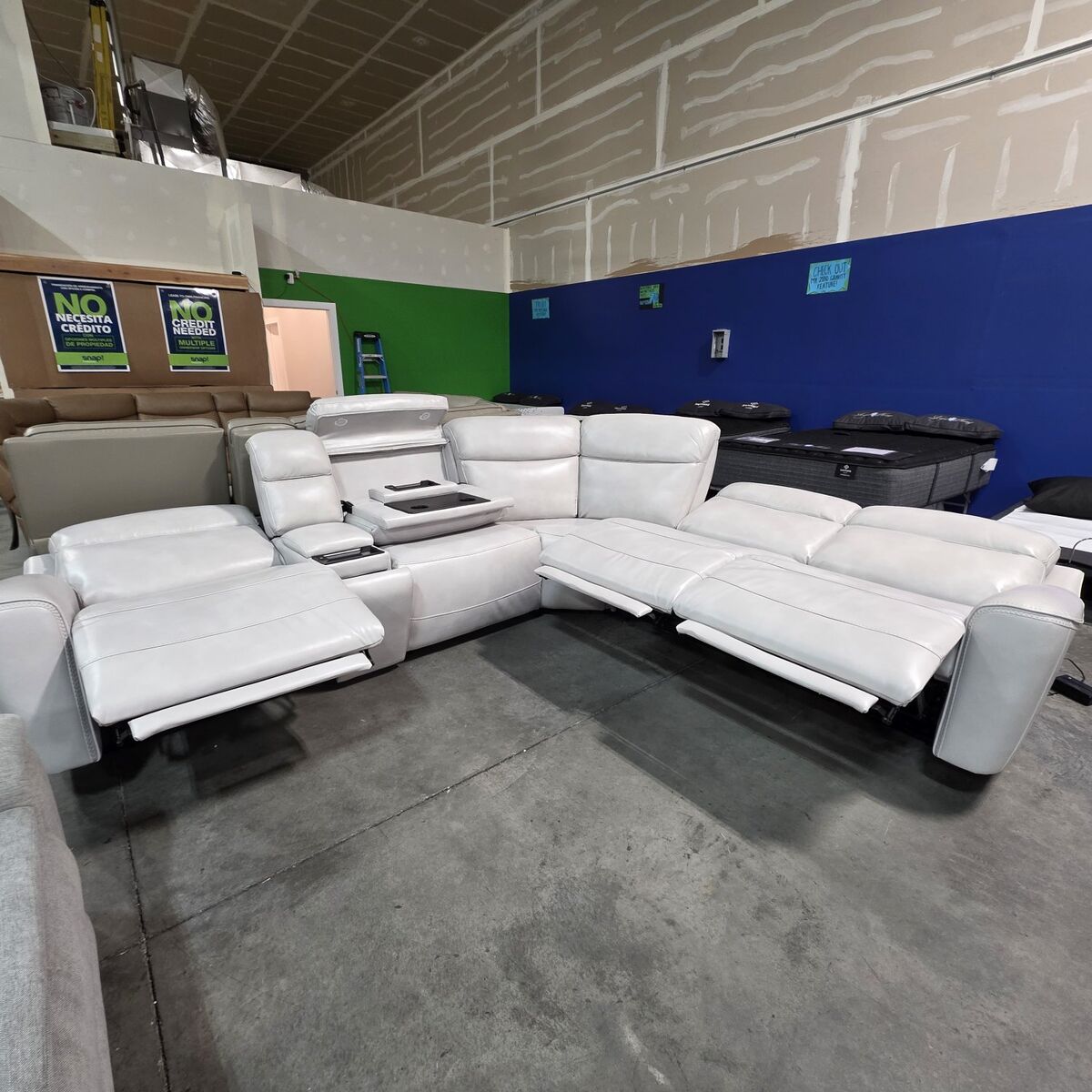 ️ 6-piece configuration ️ Power reclining seats ️ Power headrests ️ Drop-down table with cupholders ️ Console storage ️ Light, modern finish ️ Brand new