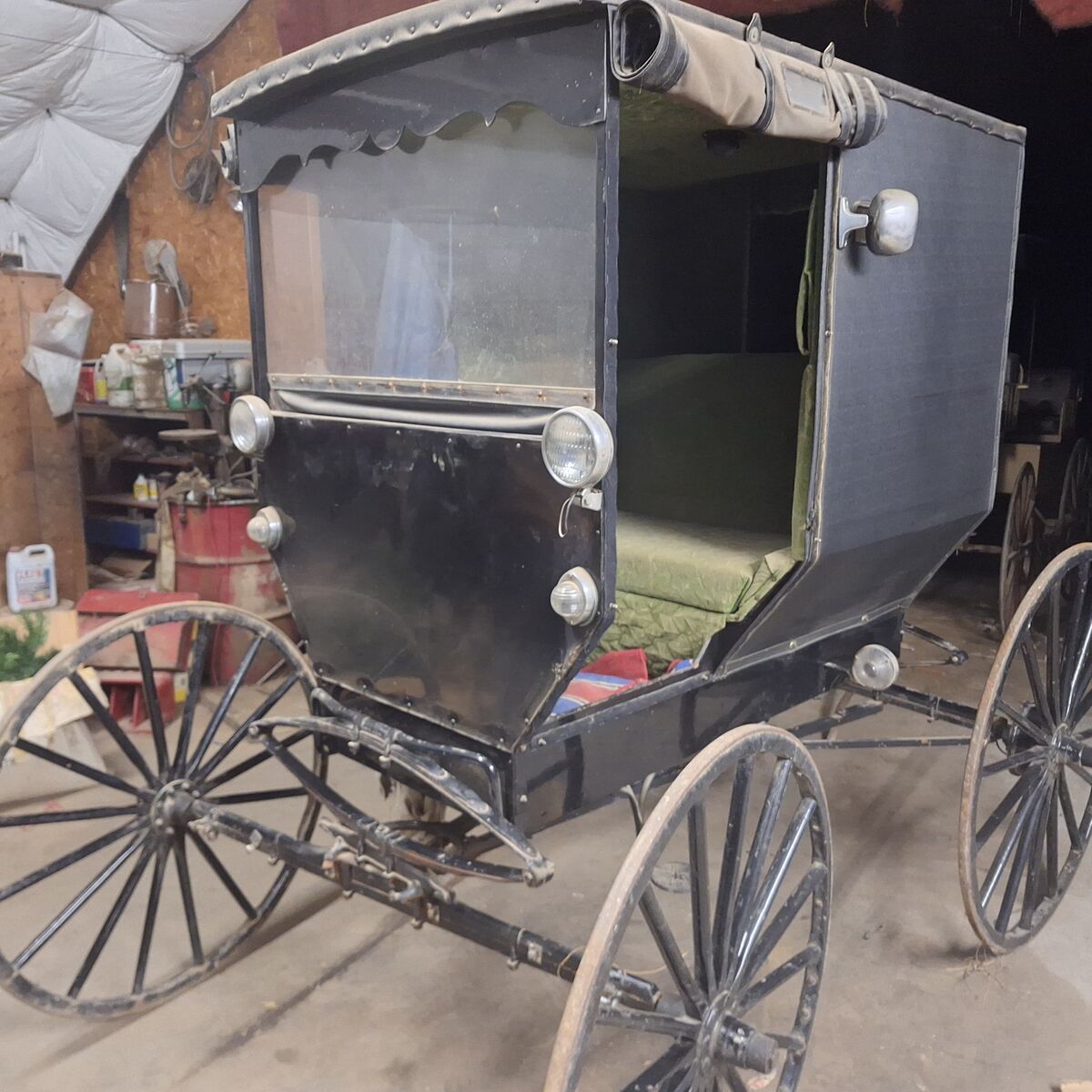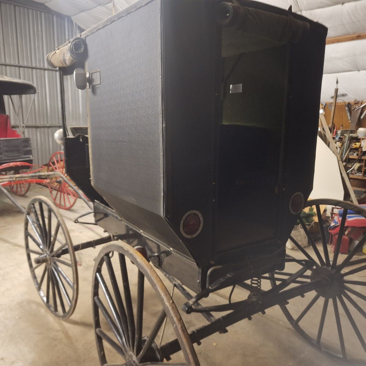 Horse carriage has brakes, shafts and tungue, ready to drive selling for 2,000 all in great shape