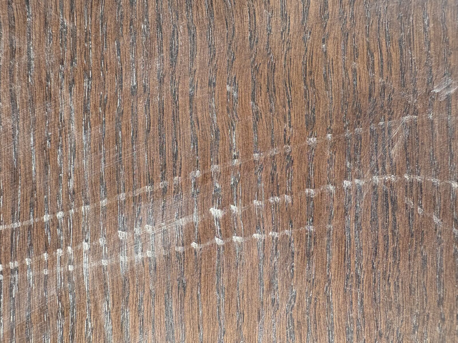 has some slight surface scratches on the right side facing, see pics. Not into the wood.