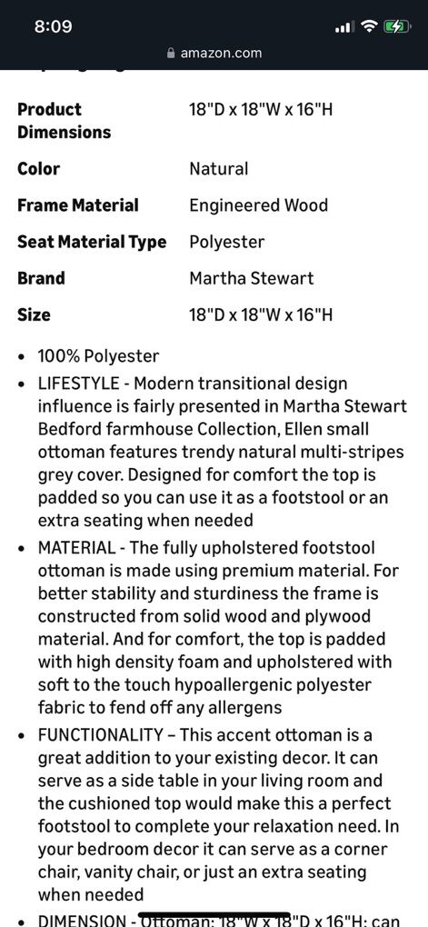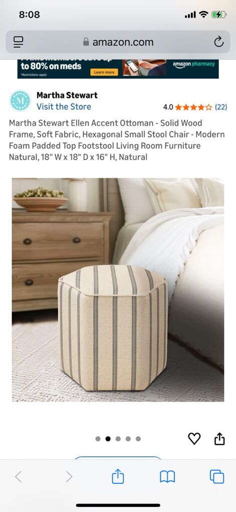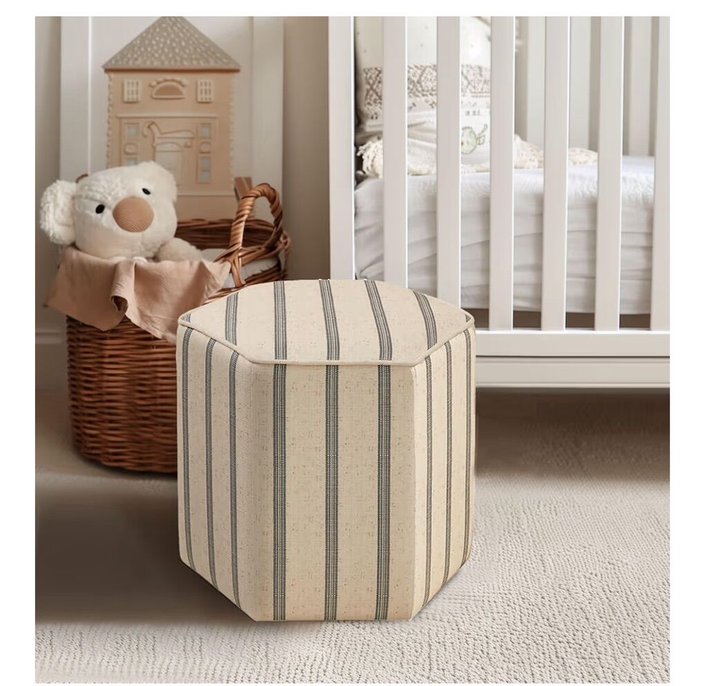 Martha Stewart Ellen Accent Ottoman - Solid Wood Frame, Soft Fabric, Hexagonal Small Stool Chair - Modern Foam Padded Top Footstool Living Room Furniture Natural, 18 W x 18 D x 16 H, Natural