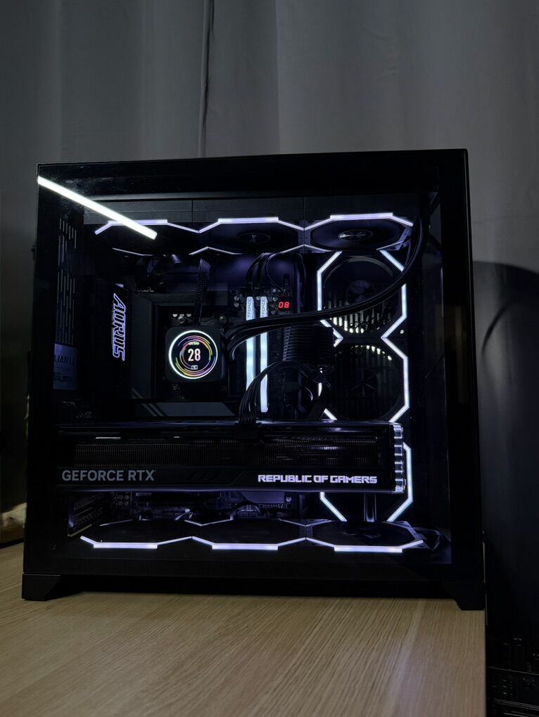 Specs: GPU: RTX 4090 ASUS ROG Strix (Still has factory warranty for 9 more months) CPU: Ryzen 7 9800x3D 8-Core Processor (Repasted on 2/7/26) CPU Cooler: Corsair H150i LCD RAM: 32GB DDR5 Team Group 6000Mhz Storage: 2TB Samsung 990 Pro NVME SSD Motherboard: Gigabyte X870E Aorus Pro WIFI PSU: Rosewill 1000W Case: Lian Li DER8AUER O11 DynamicOS: Windows 11 Pro Activated