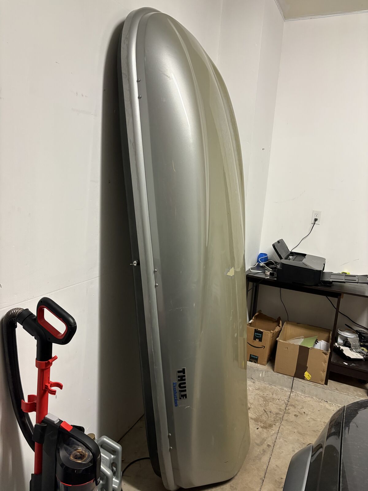 ZelleGreat condition Thule evolution XXT XL cargo box with the only flaw shown on the picture NO CRACKS and little bit of sun on it. This box is the biggest edition in the model. Has keys opens both sides and has all hardware.
